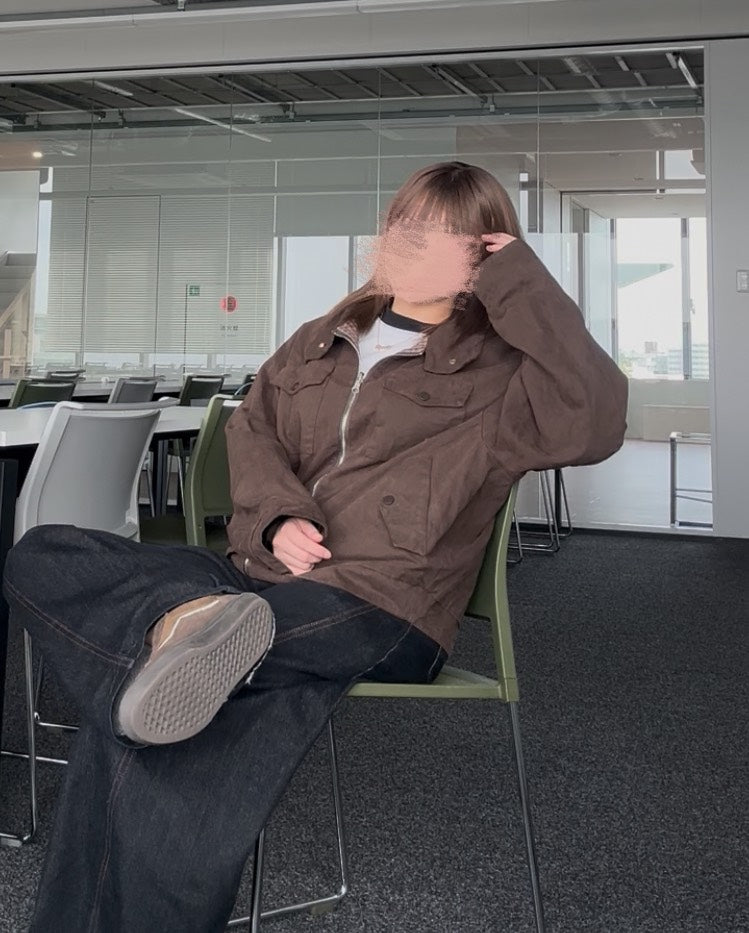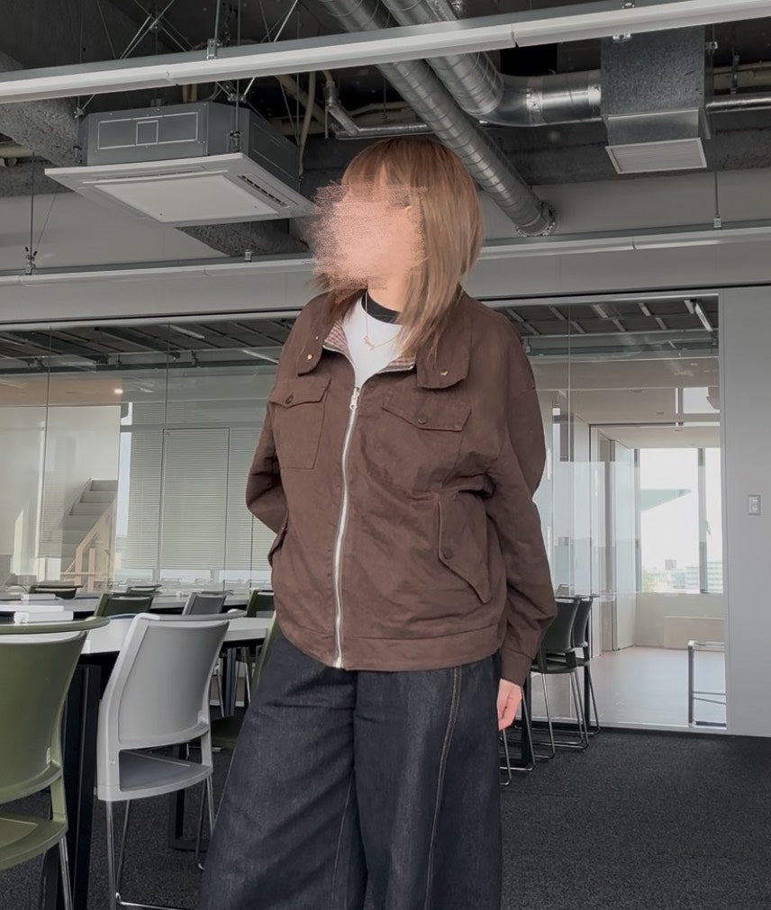 チェック柄と無地ブラウンのリバーシブル仕様で、気分や気温によって着こなしを変えられる。どちら面も絶妙にくすんだカラーがヴィンテージっぽくて、羽織るだけでコーデが一気に垢抜ける。ゆったりしたシルエットで体型を選ばないし、スカートでも太めのパンツでも合わせやすい。2パターン楽しめるのに収納ひとつぶんで済む、賢い人が選ぶ一着。