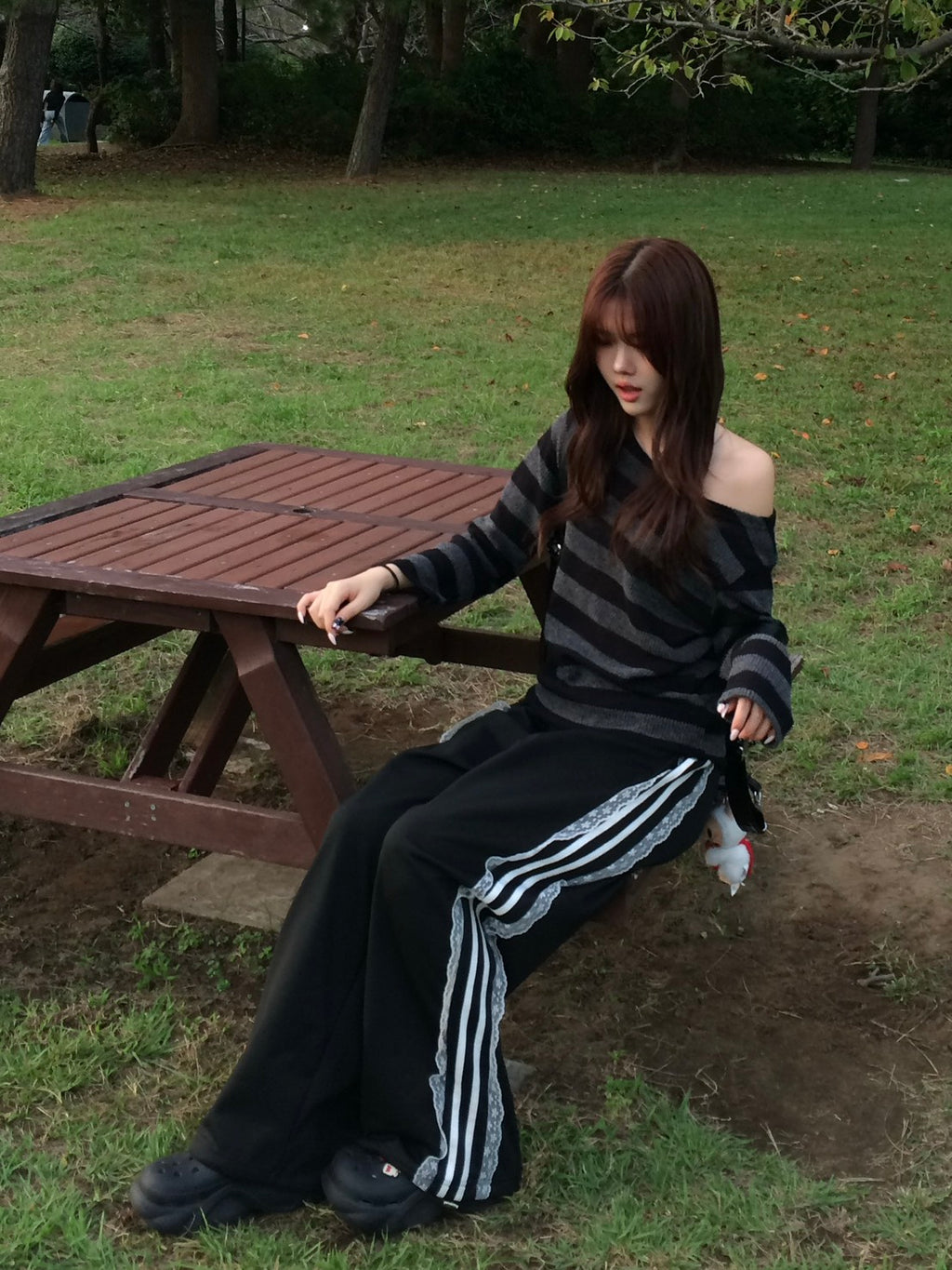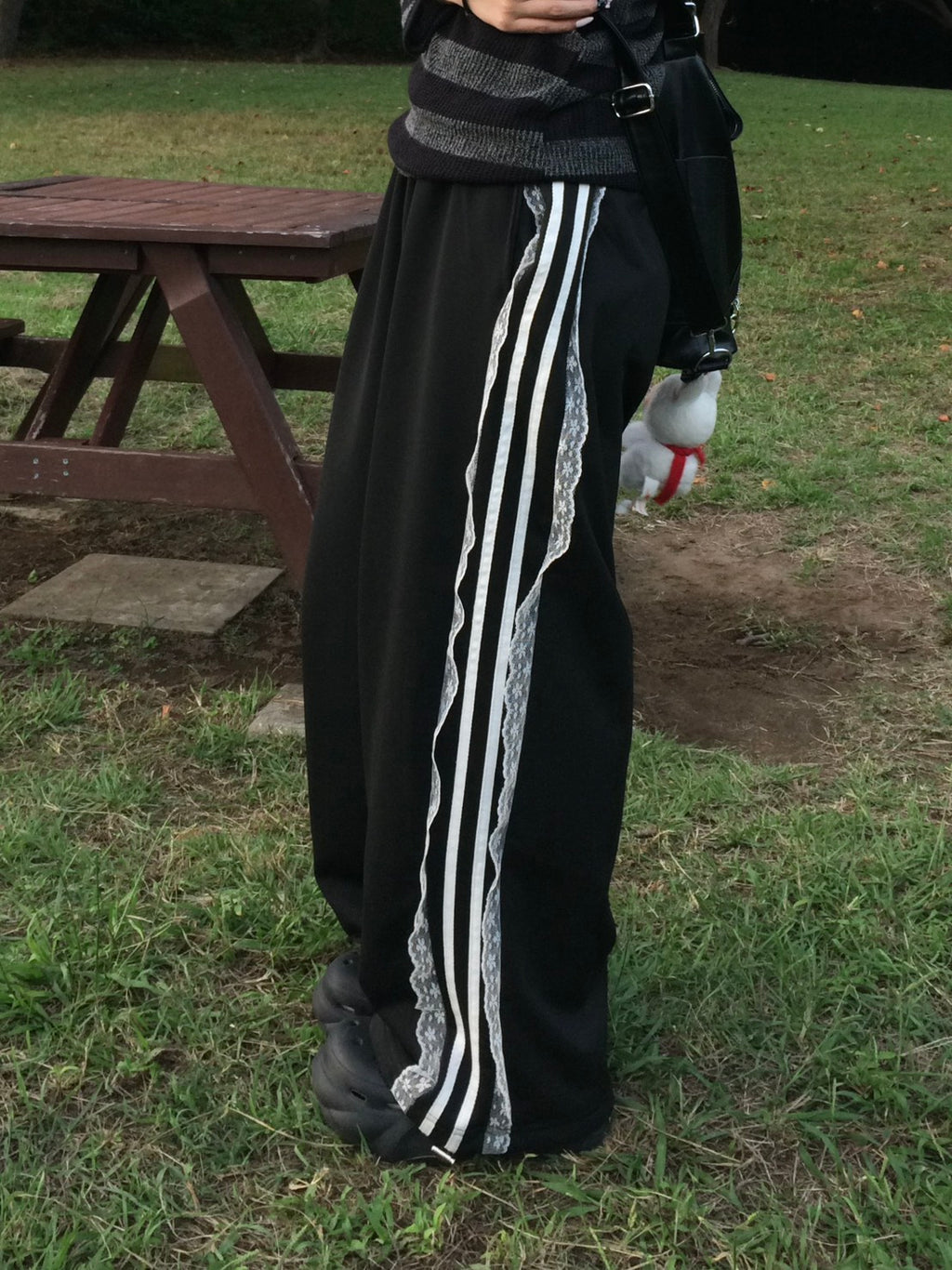 誰もが知る、あのジャージへの最大のリスペクト。それは、ルールを破って、もっと面白くすること。クラシックな3本ラインに、レースを重ねるという、ささやかな反逆。分かる人にだけ、この”遊び”が届けばいい。