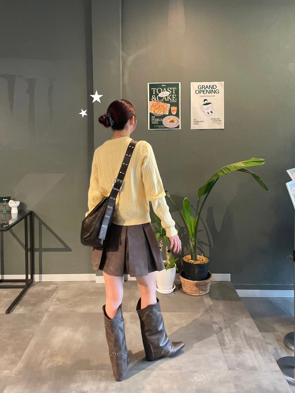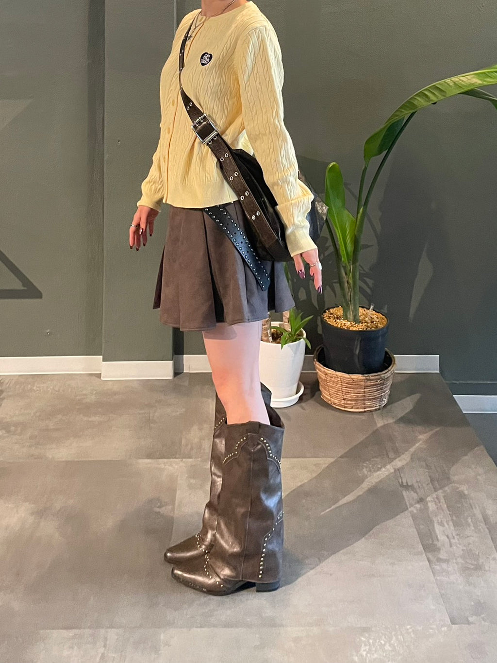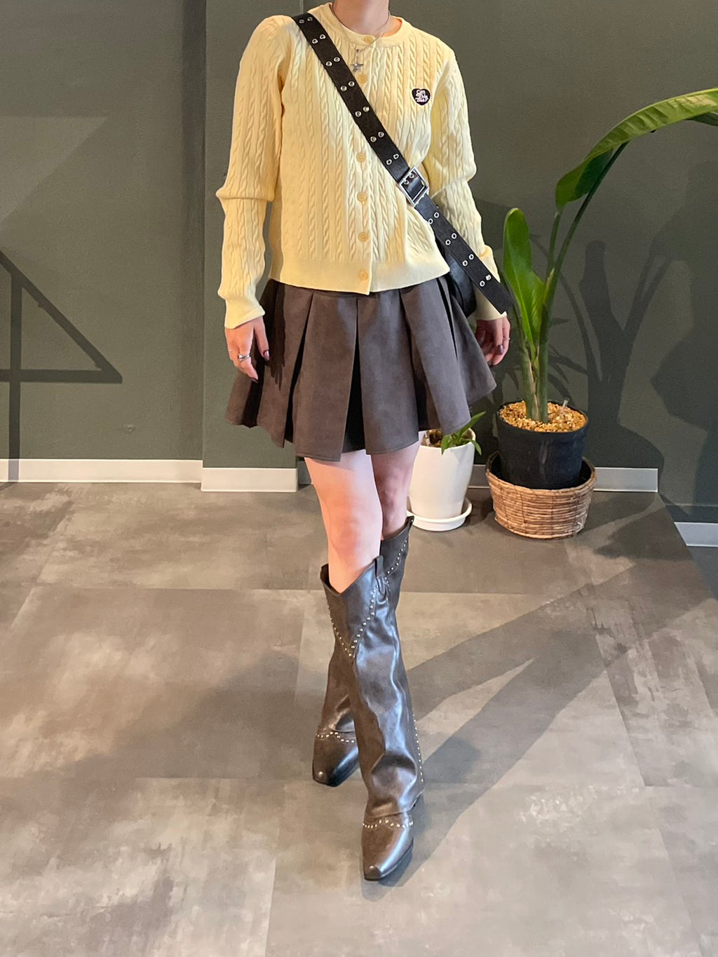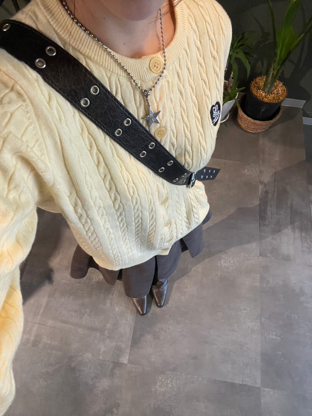 柔らかく明るいパステルイエローが印象的なケーブル編みのカーディガン。