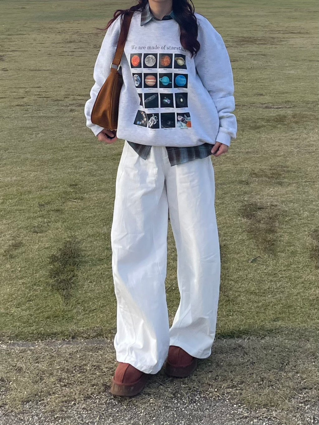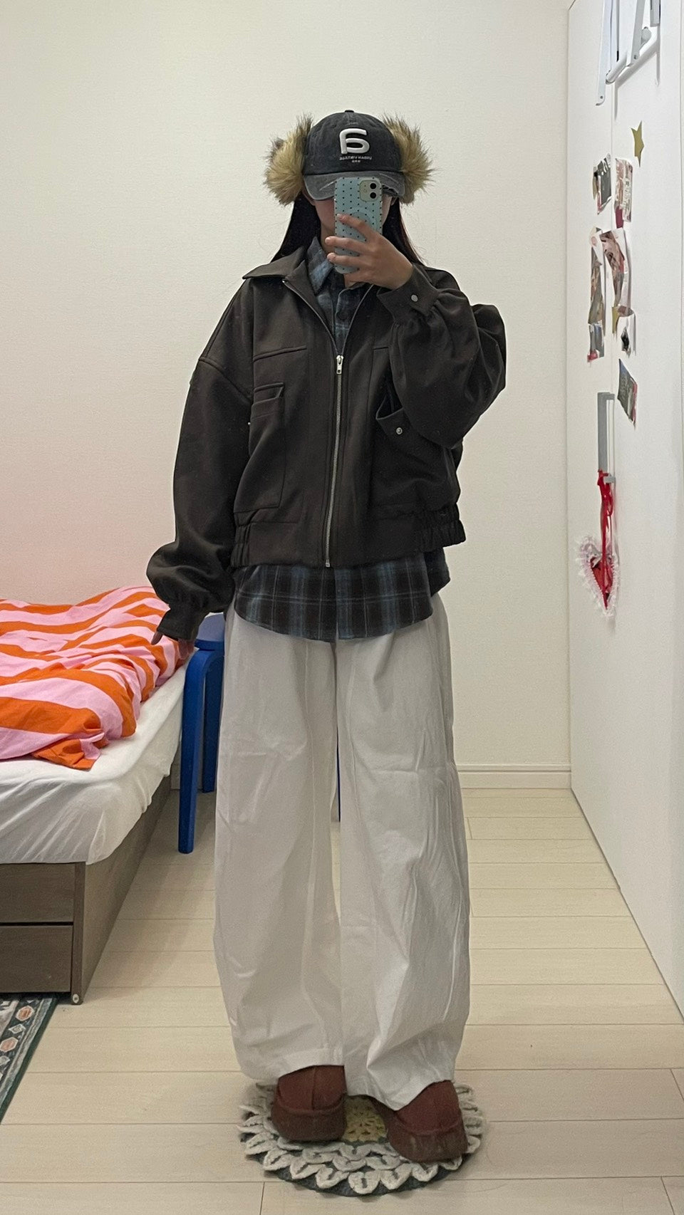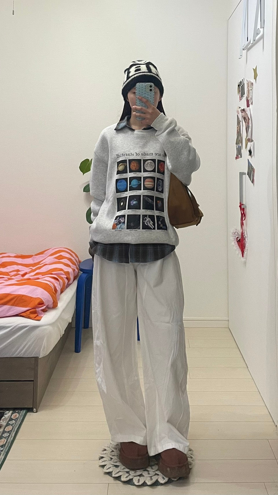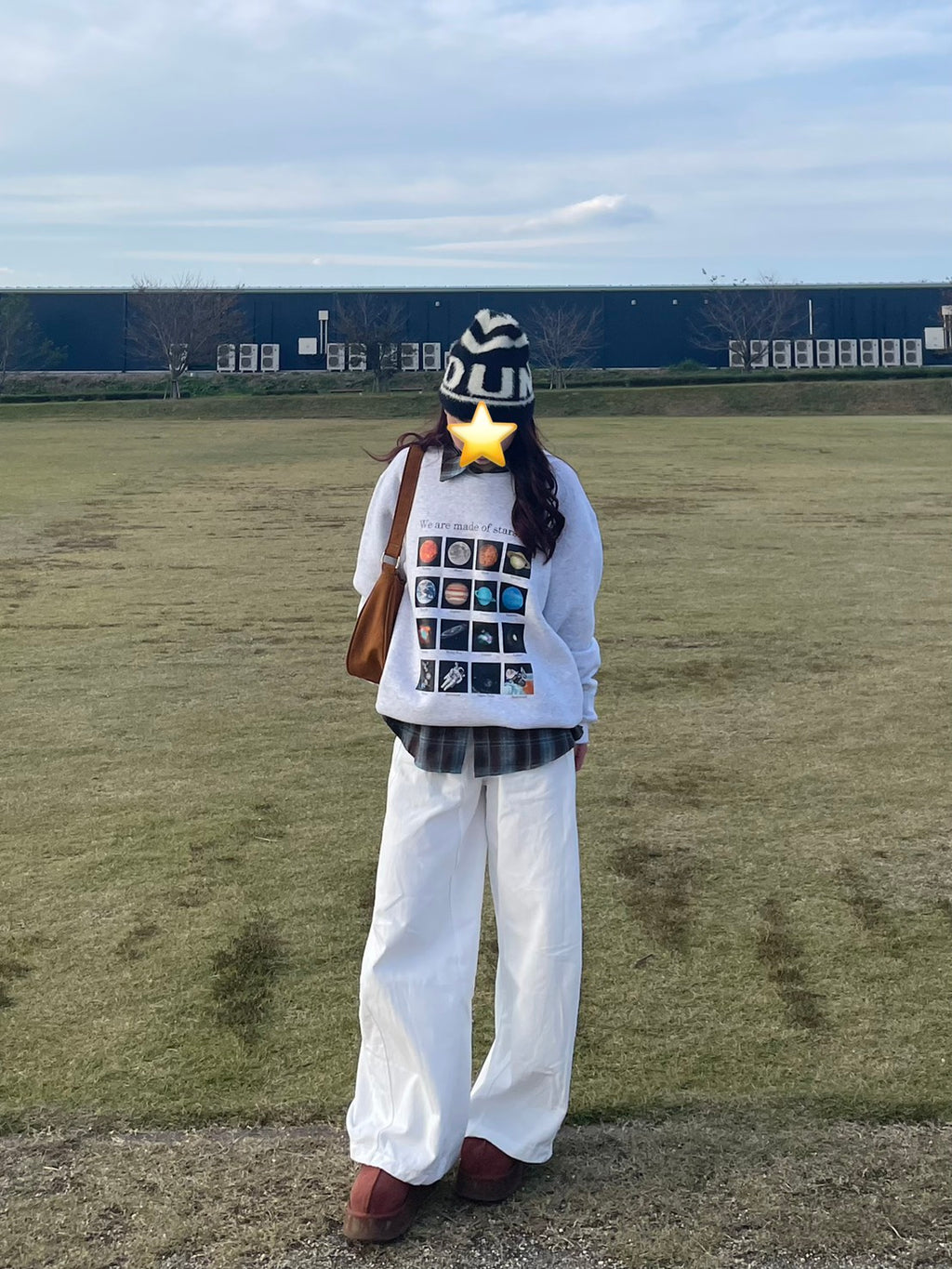 このチェックシャツは、最強の「見せインナー」。今日はスウェットの首元と裾からチラ見せして、ストリートコーデのアクセントに。でも、ニットとミニスカでプレッピーに着るのもアリ。この絶妙な配色が、どんなコーデにも馴染む秘訣。レイヤードが楽しくなる一枚。