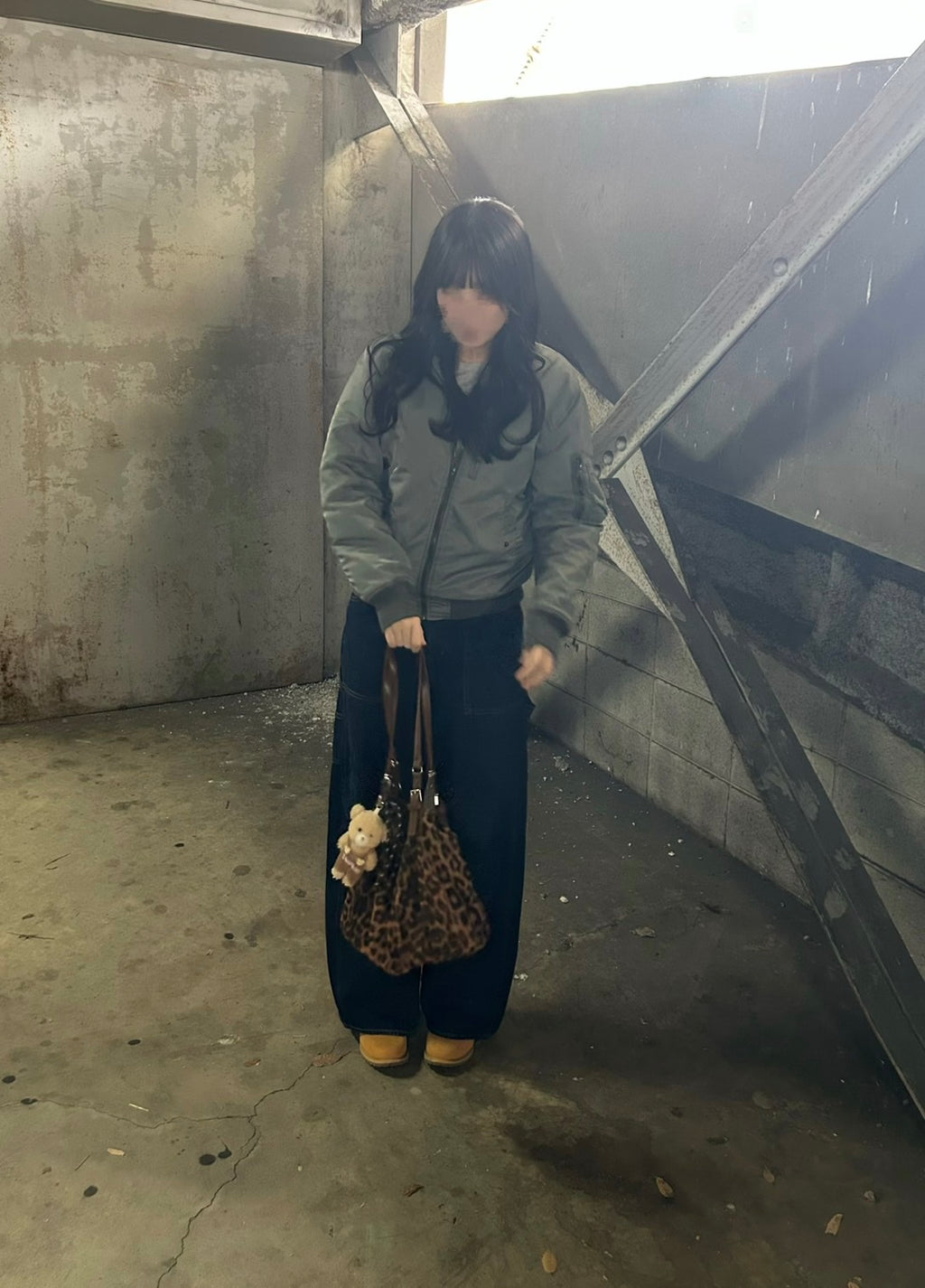レオパード柄がアクセントになりつつ、全体は落ち着いた印象にまとまります。