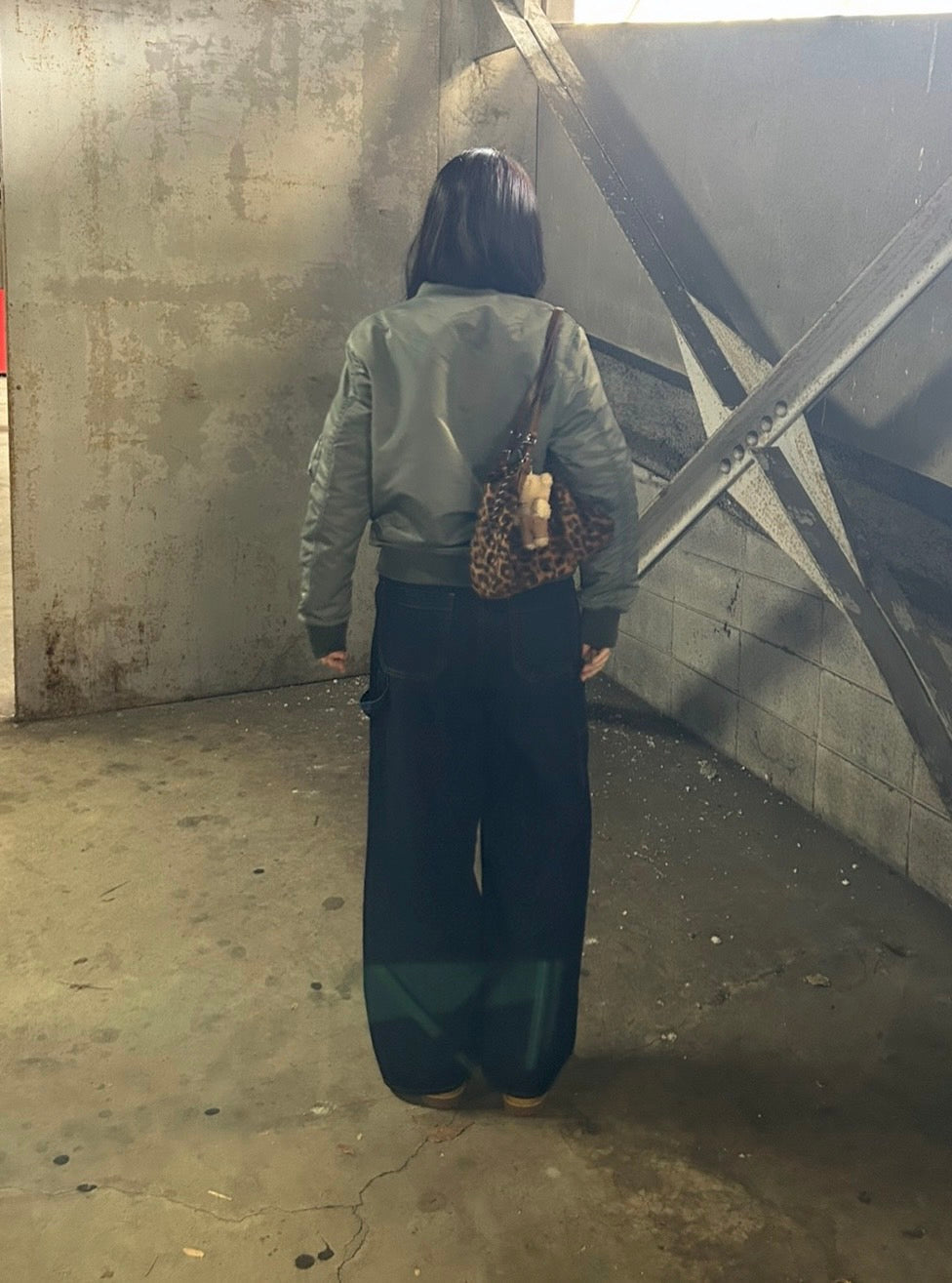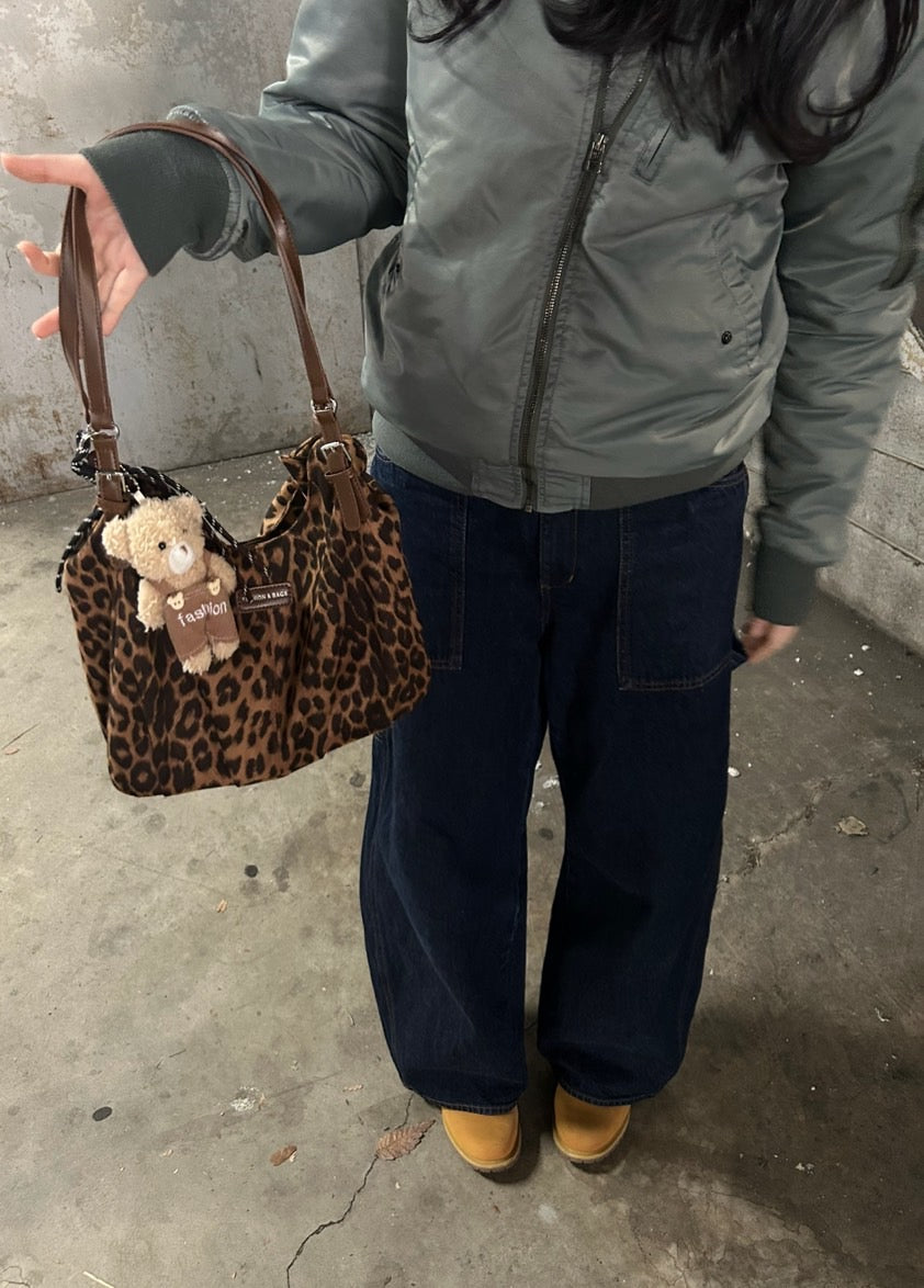 落ち着いたブラウンベースのレオパード柄に、やや柔らかめの素材感を組み合わせた、ヴィンテージムード漂うワンショルダーバッグです。柄物ながら主張しすぎず、デニムやミリタリー、シンプルなコーデにも自然に馴染みます。