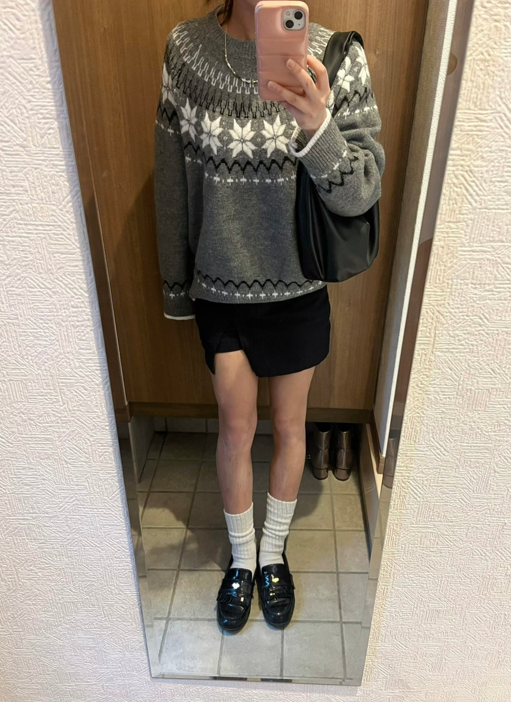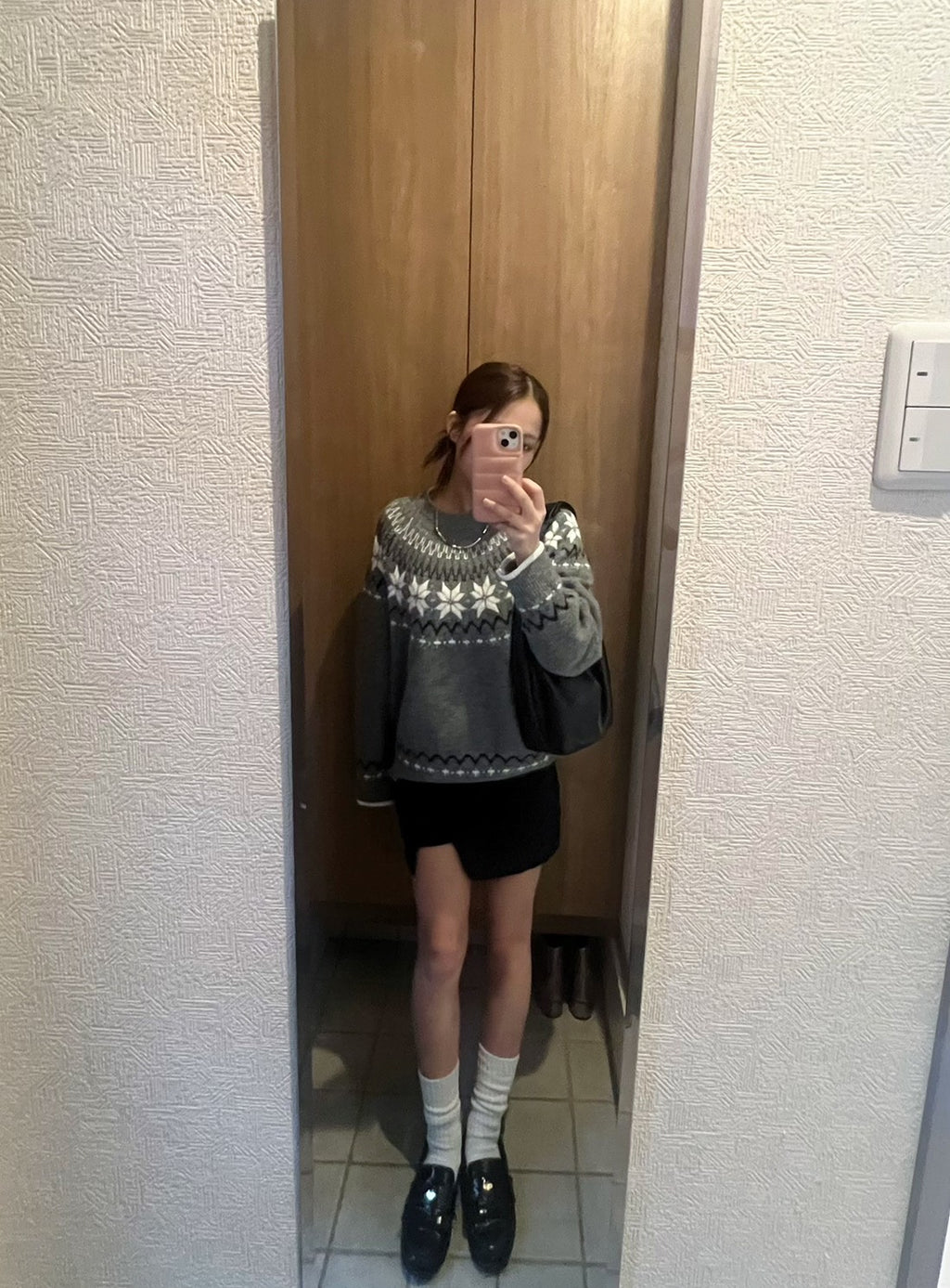 🧶 ルーズフィットのフェアアイルニットは、柄の存在感を活かして一枚で主役に。