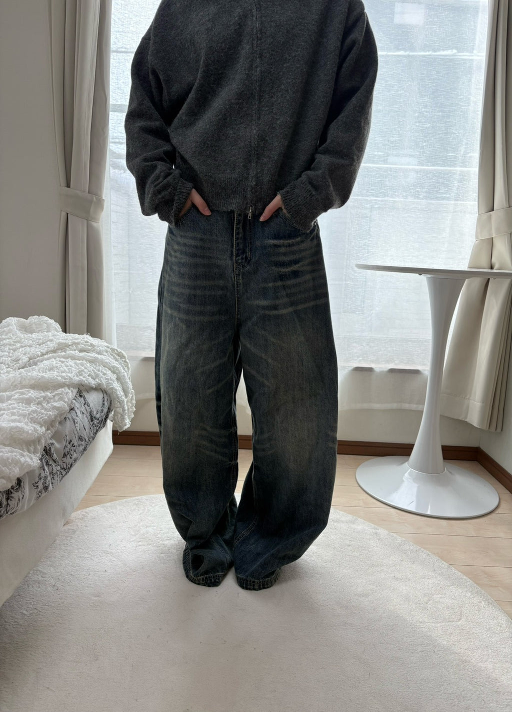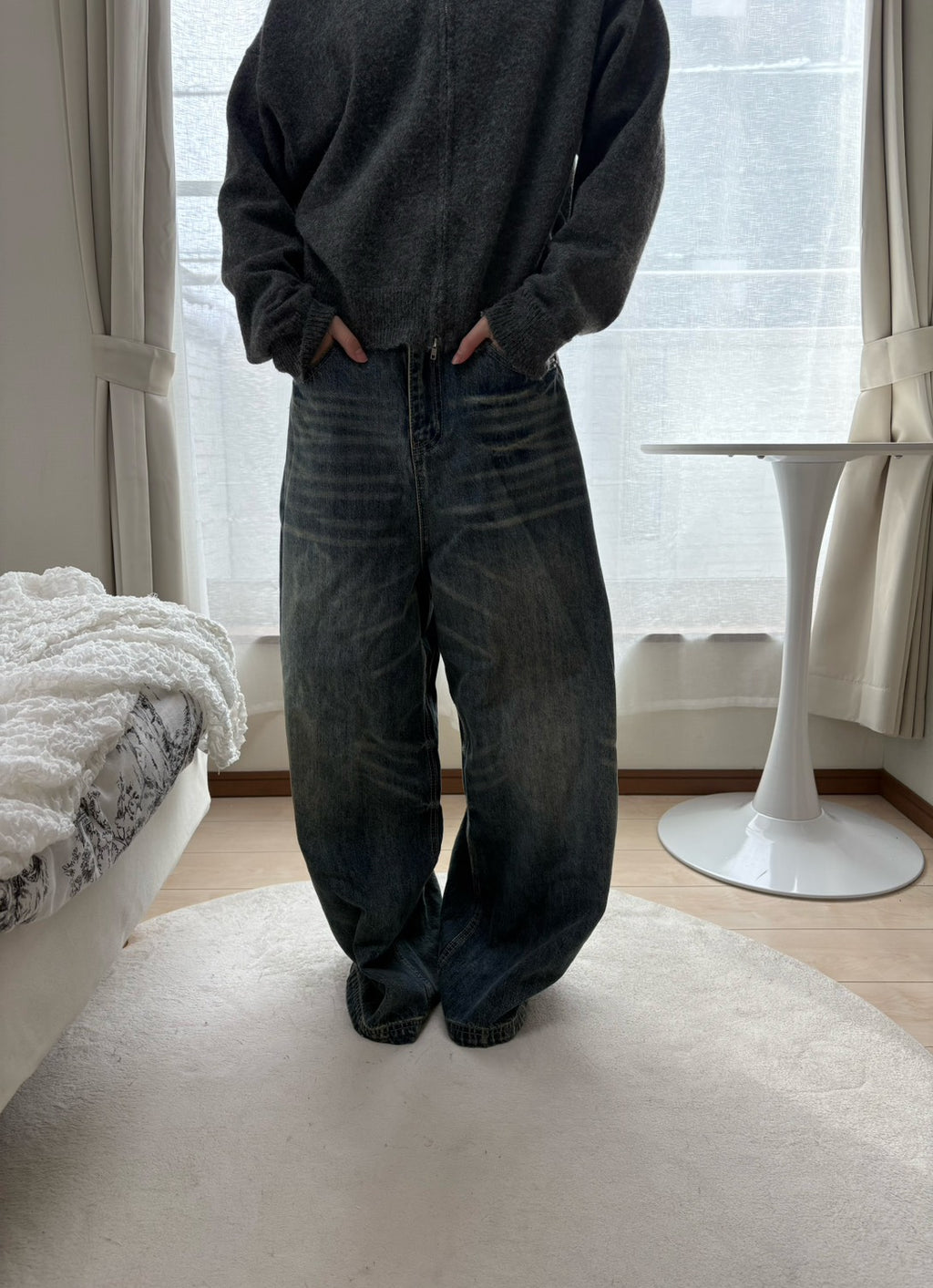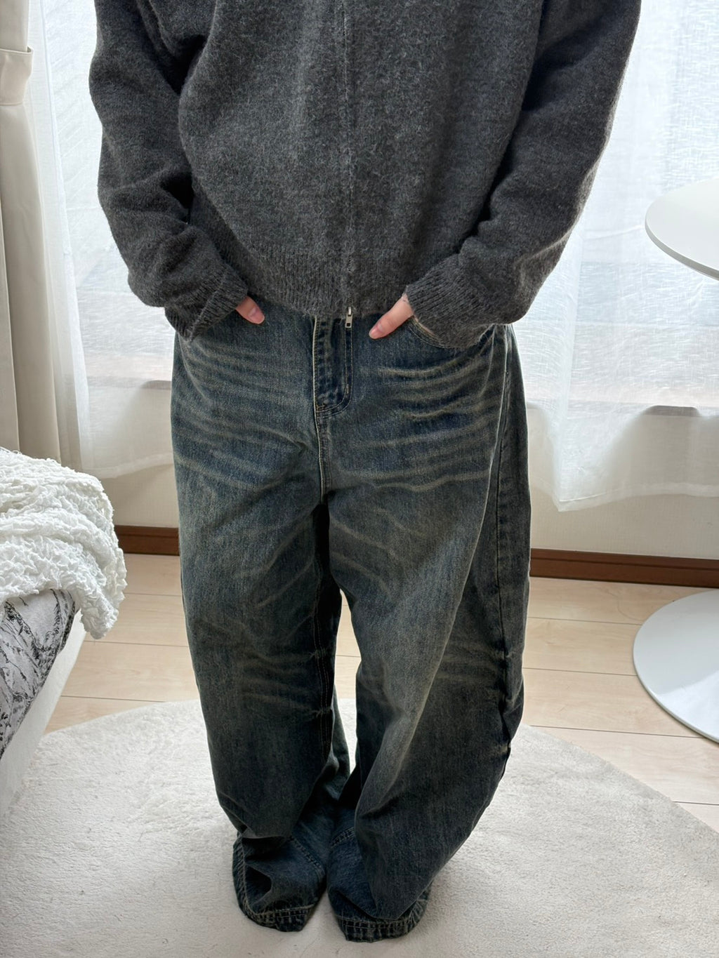 ヴィンテージ感のあるウォッシュ加工を施した、ワイドデニムパンツです。