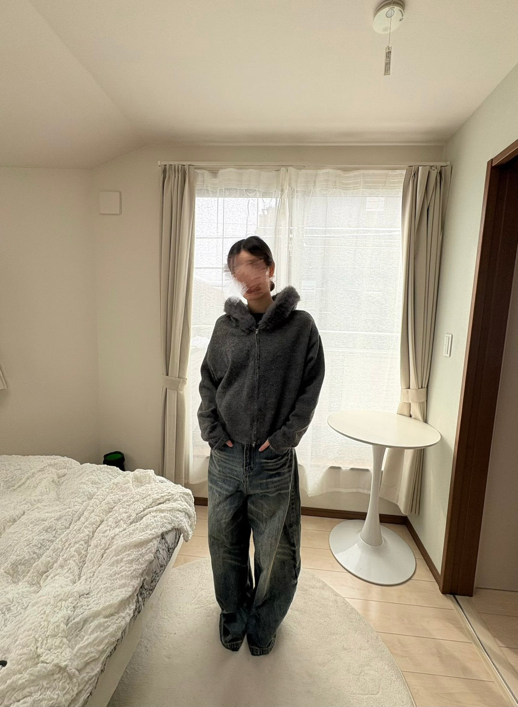 全体に自然な色落ちとムラ感を持たせ、のっぺりしない立体的な表情に仕上げました。最大の特徴は、脚のラインに沿って緩やかにカーブするバナナ(カーブ)シルエット。ストレートとは違う独特の落ち感があり、シンプルなトップスと合わせるだけで雰囲気のあるコーデが完成します。