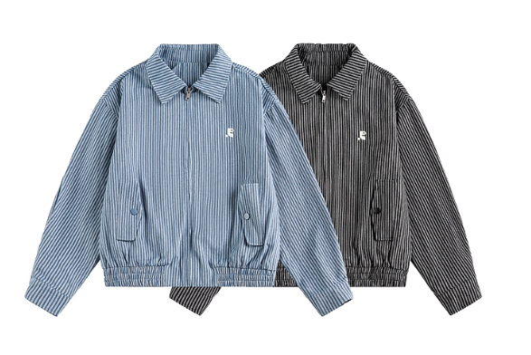 ストライプ柄が映えるショート丈ハリントンジャケット。