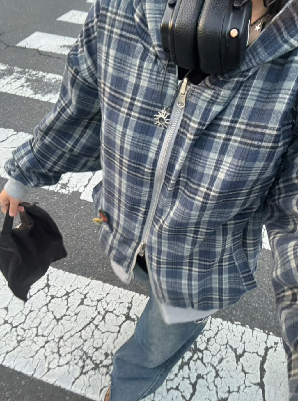 トレンドの“美式レトロムード”を感じるチェック柄リバーシブルパーカー。