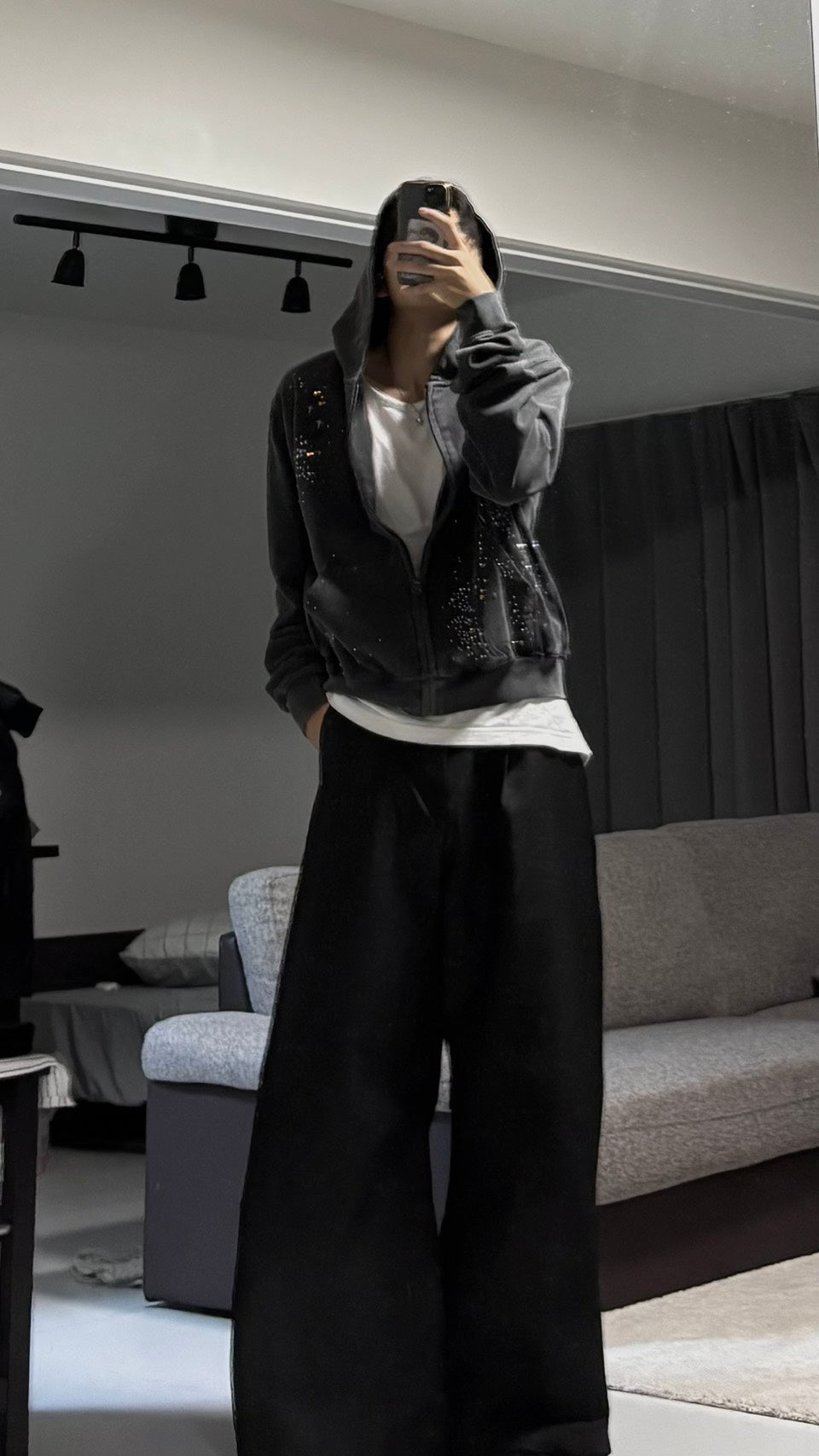 このヴィンテージライクなウォッシュ加工がまずツボ。散りばめられたストーンデザインが、他にはないアクセントになってる。あえてのショート丈だから、インナーを覗かせたり、ワイドパンツと合わせるだけでバランスがキマる。羽織るだけで、一気にY2Kストリートな雰囲気に。