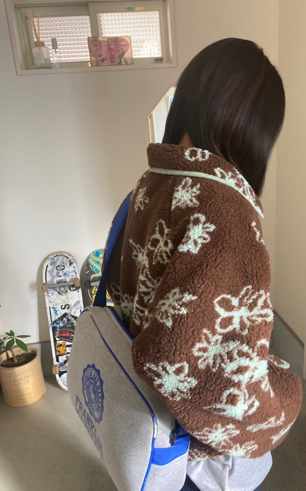 ボアの可愛さにデニムでラフさを足して、甘くなりすぎないのがポイント。