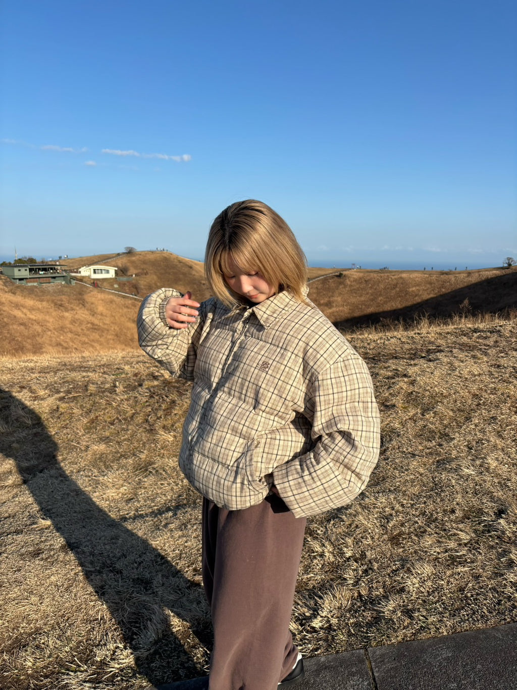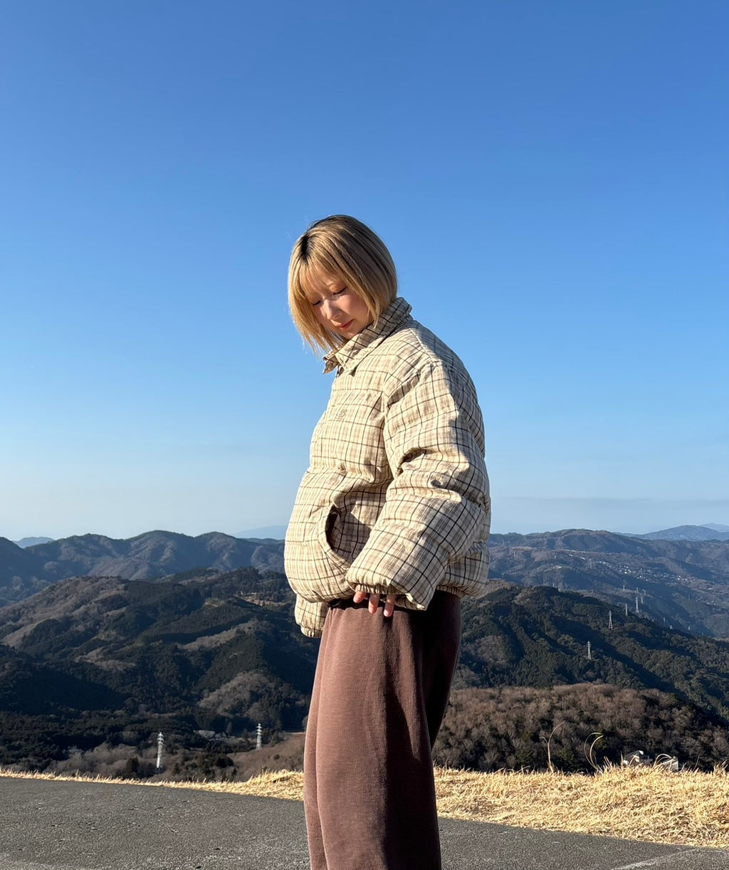 襟付きデザインのチェック中綿ジャケットは、程よくきちんと感をプラスできる一枚。