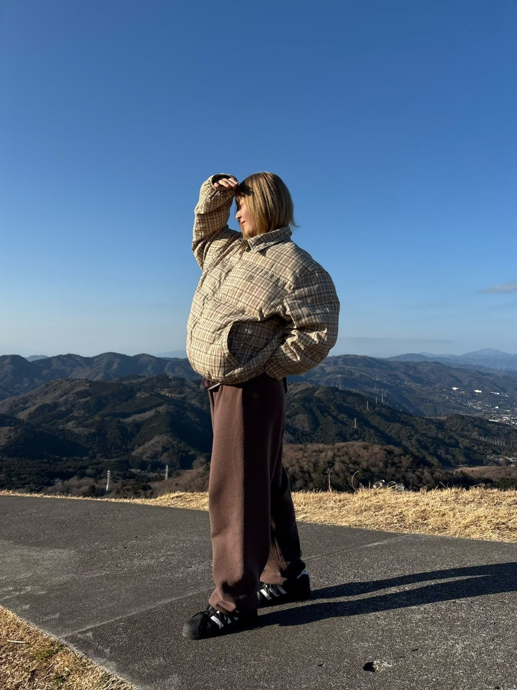 中綿入りでしっかり暖かく、ルーズなボトムともバランス良くまとまります。