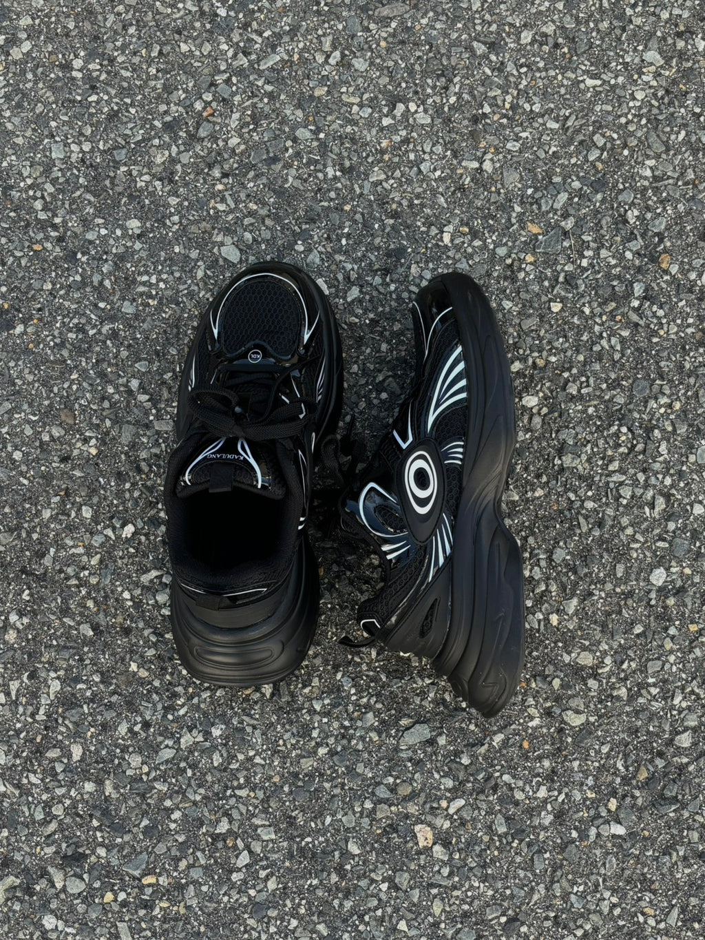 今日は極太のカーゴパンツを合わせて、あえて「重×重」のバランスに。パンツの裾がスニーカーに乗っかる、このY2Kなシルエットがたまらない。どんなに太いパンツでも、こいつが全部受け止めてくれる。グランジスタイルに欠かせない一足。