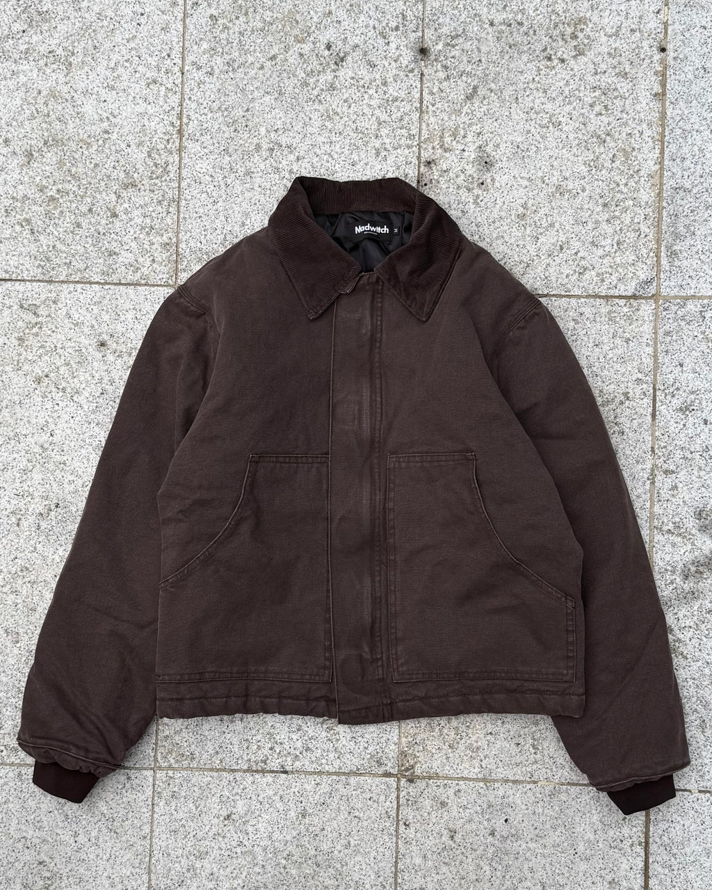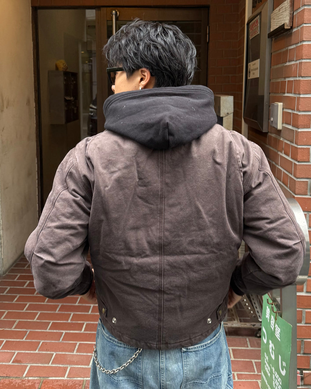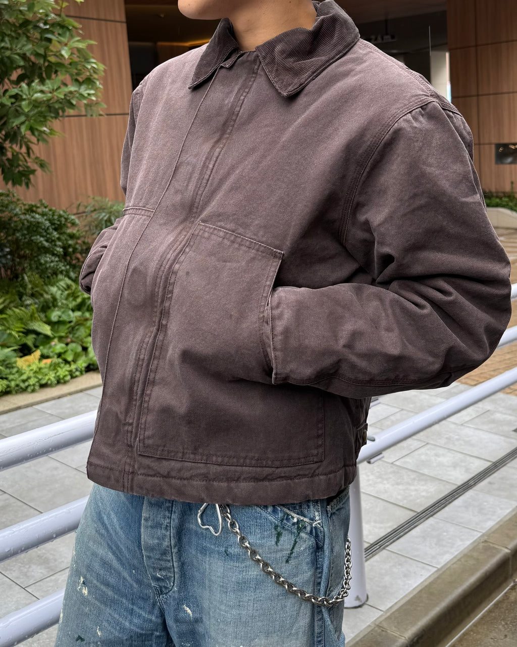 中綿入りでしっかり暖かい。ポイントは、あえての短丈ボックスシルエット。今日は極太のペイントデニムと合わせて、王道の「短×太」Y2Kワークスタイル。フーディーをレイヤードするのも、もちろんアリ。
