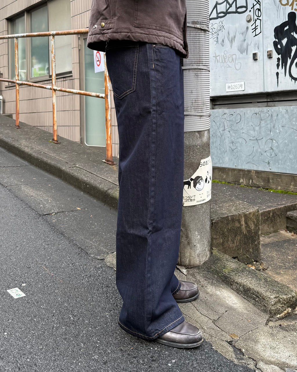 今日の主役はこのリジッドデニム。ただ太いだけじゃない、このクリーンなワイドストレート感が絶妙。