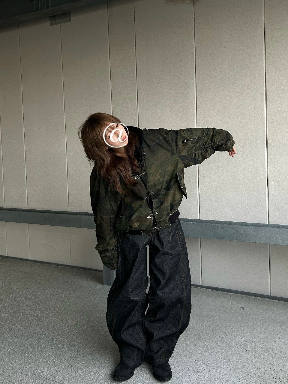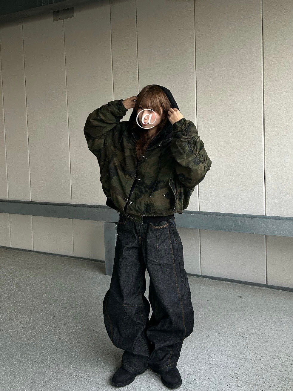 ショート丈でボリューム袖だから、着るだけでストリート感が爆上がり。フロントのフックやキルティングの裏地もこだわりポイント。今日は極太デニムと合わせて、とことん「ゆる×ゆる」なY2Kシルエットを楽しむのがマイルール。