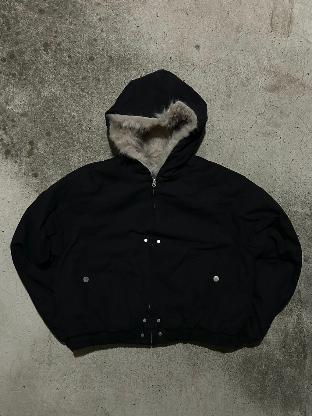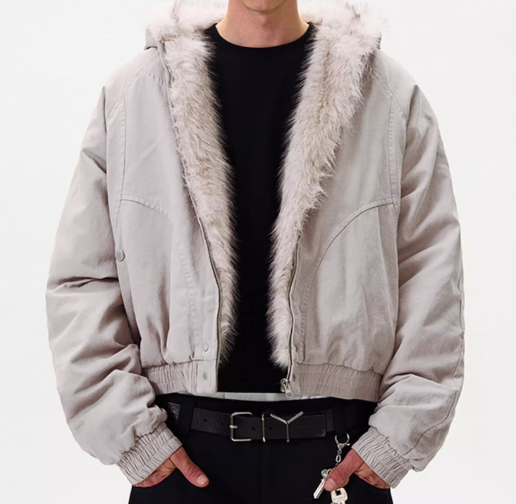 このブルゾン、なんといってもフードのフェイクファーのボリューム感が最強。