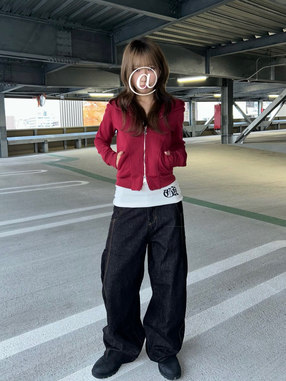シルエットはコンパクトだけど、着心地はストレッチが効いてて動きやすい。ダブルジップだから、下を少し開けてレイヤードを見せてもかわいい!私は太めのデニムでバランス取って、ストリートっぽく仕上げてる。タンクやロゴTをチラ見せすると一気にこなれ感出るよ。甘すぎず辛すぎない絶妙な一枚です◎