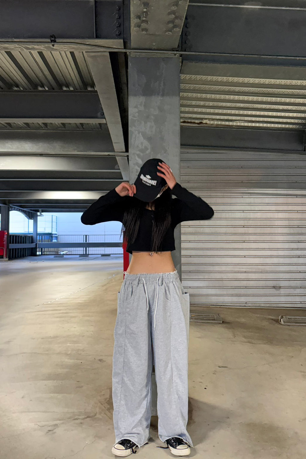 ハイウエストでもローウエストでもバランスが取りやすく、クロップドトップスやコンパクトなトップスとの相性も抜群です。