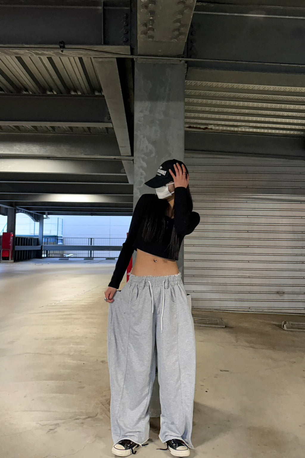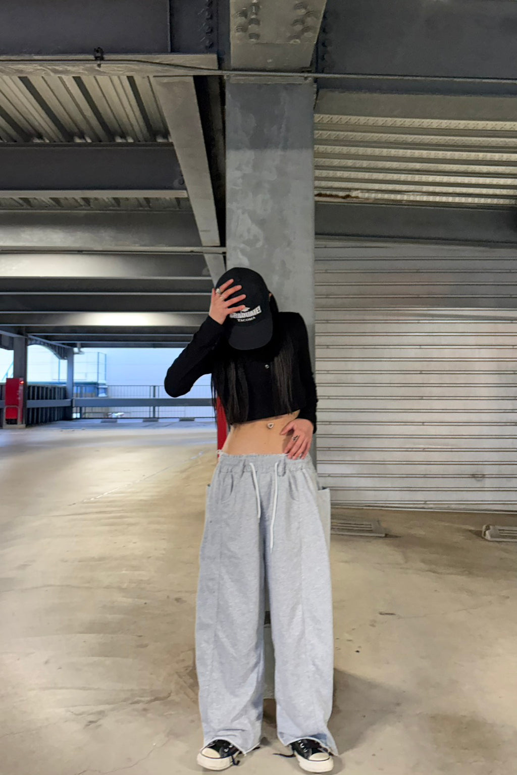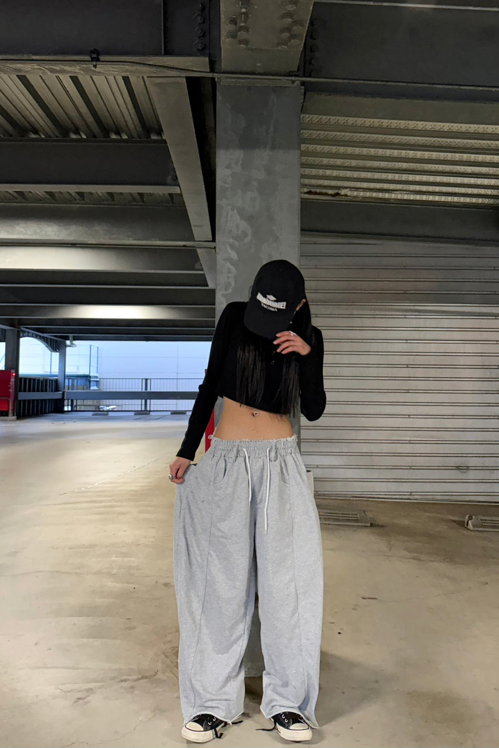 立体的なタックデザインで、シンプルながらも存在感を放つボリュームスウェットパンツ。
