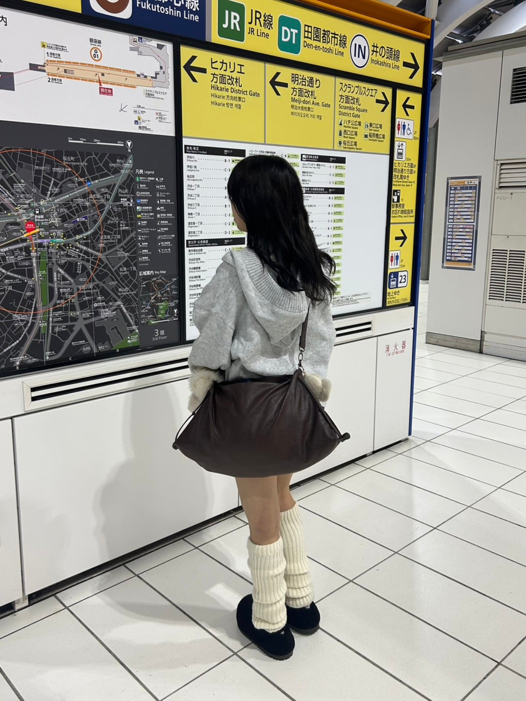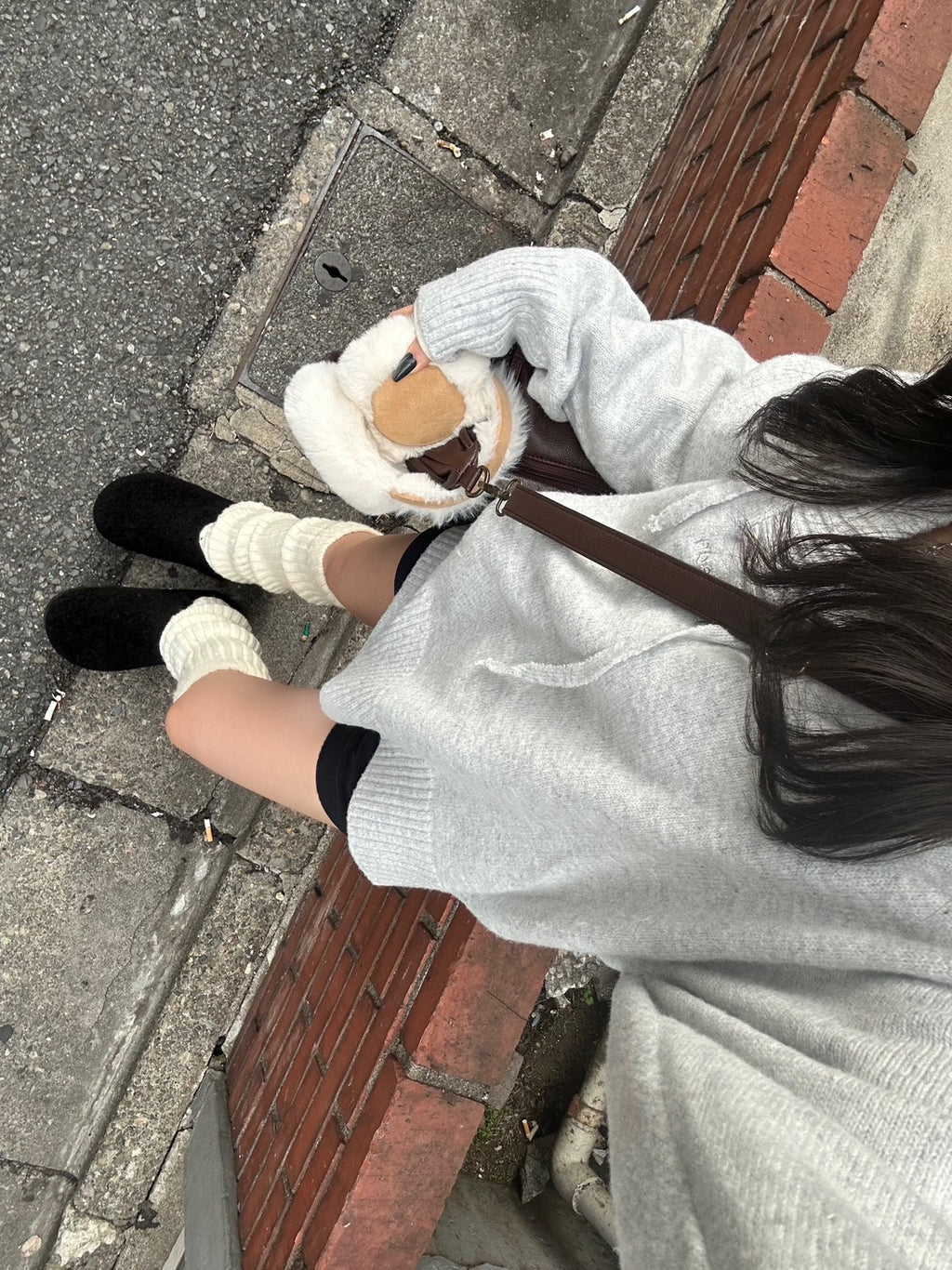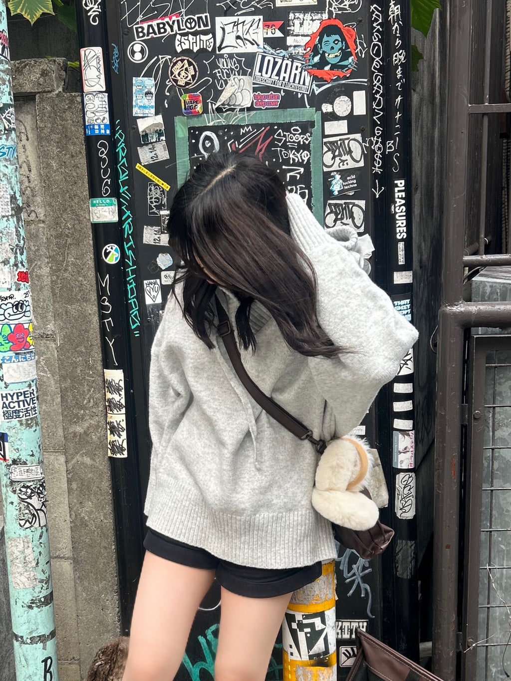あえてワンピっぽく着て、ショーパンをチラ見せするのがマイルール。最大のポイントは足元。Y2Kムード全開のルーズソックスと厚底シューズで、ボリューミーに。この「ゆる×ピタ」なシルエットが、今の気分なギャルスタイル。バッグのファーチャームもポイント。