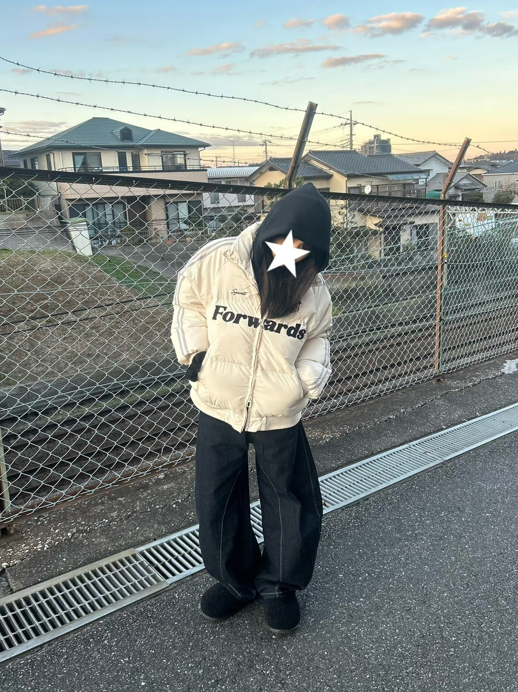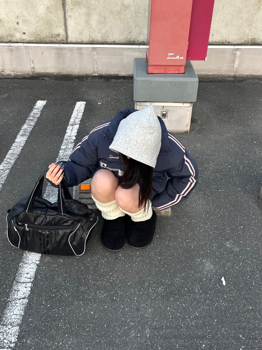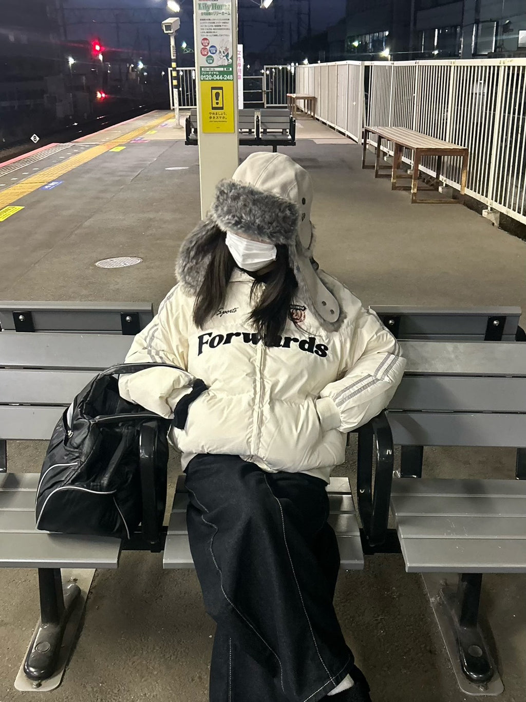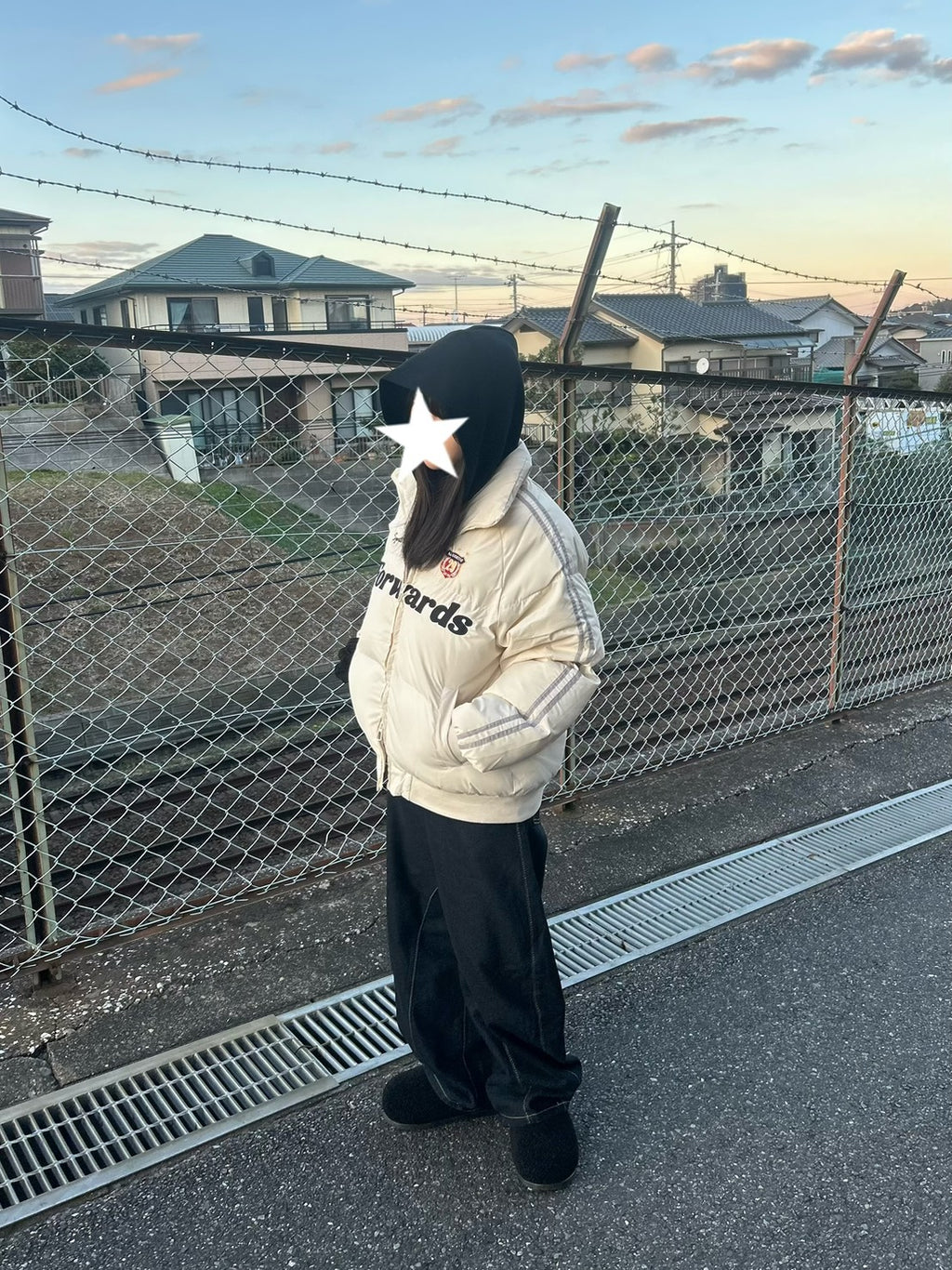 ライン入りの配色がスポーティなのに、丸みのあるシルエットで可愛く着られるのが好き。スタンドカラーで首元まで暖かく、パーカーを重ねてももたつかないのが嬉しいポイント。ミニボトムと合わせると一気にバランスが取れて、冬でも軽さのあるスタイルに。