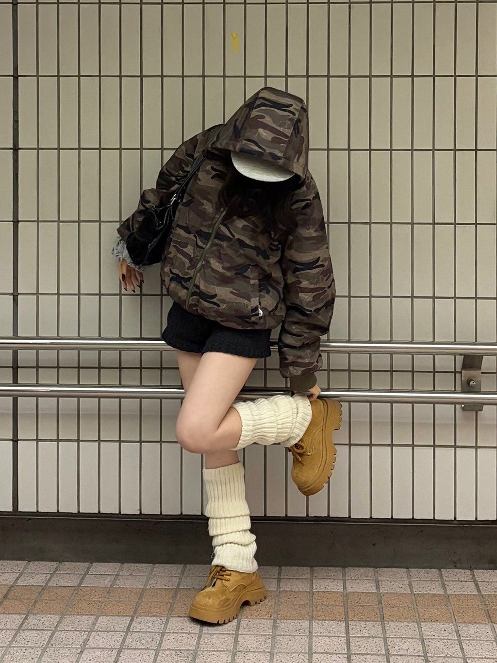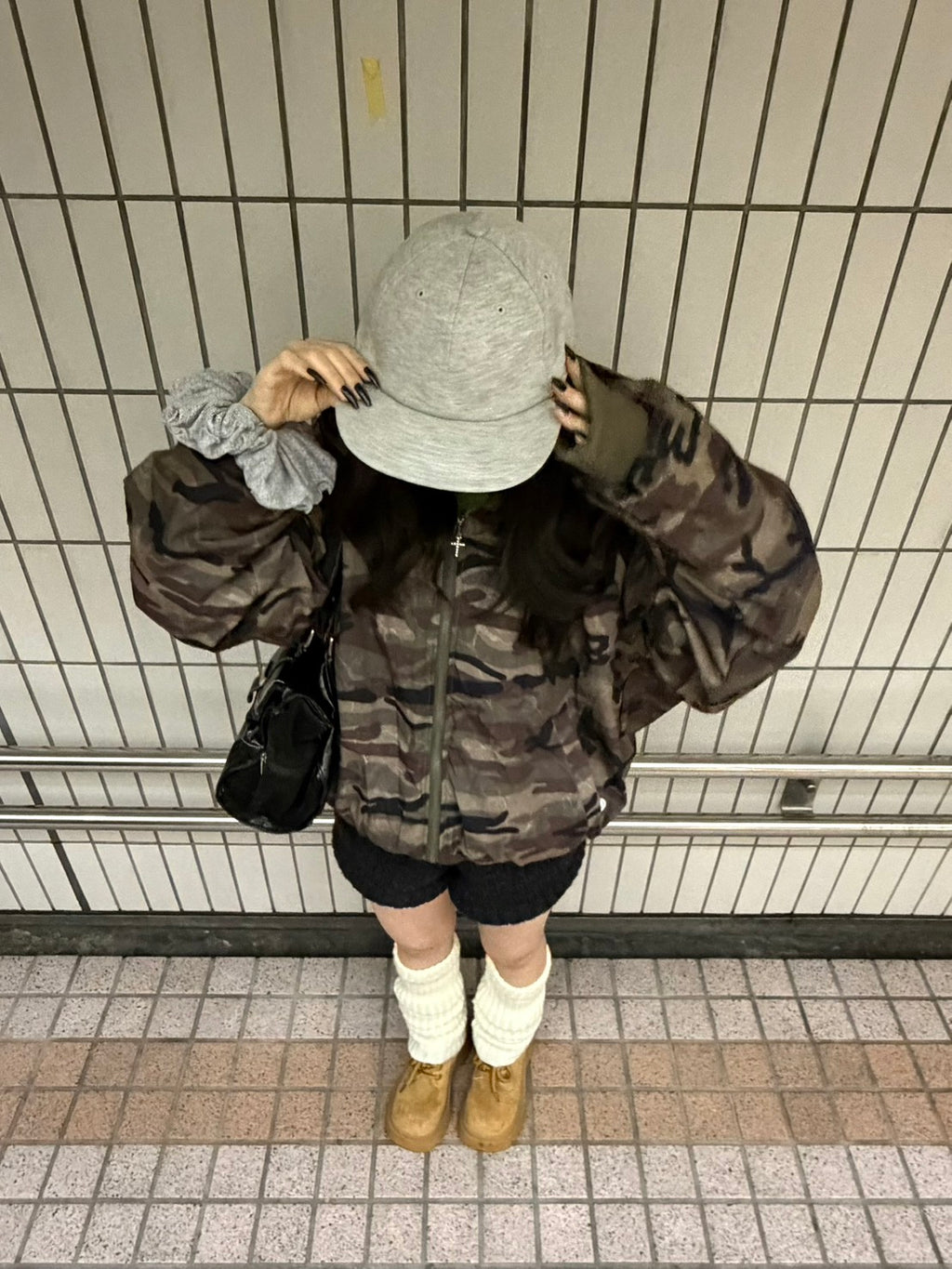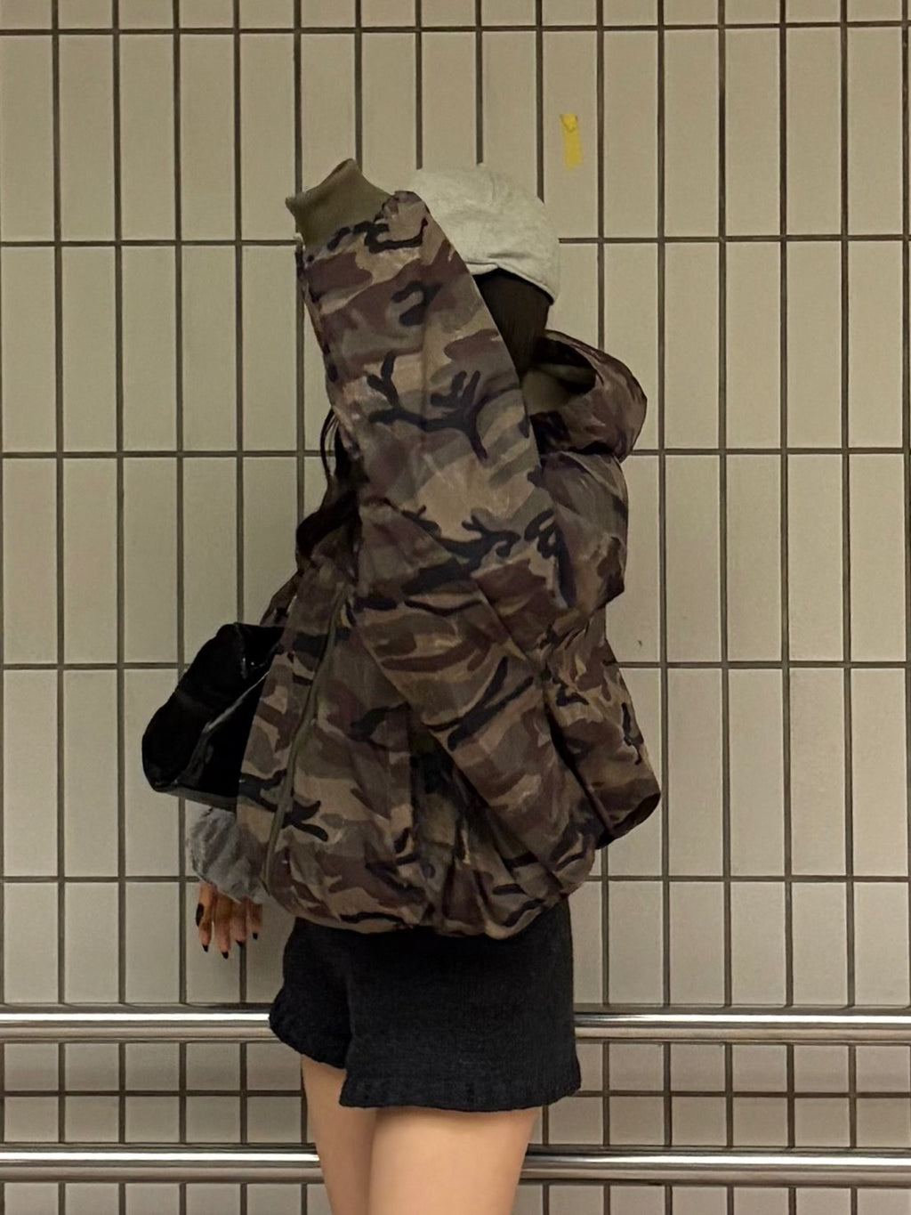 リバーシブル仕様で気分に合わせて雰囲気を変えられるのが嬉しい迷彩パーカー。迷彩でも色味が落ち着いているので、意外と合わせやすいです。ショート丈×ボリューム感でバランスが取りやすく、ミニボトムと合わせると程よく甘さも出て、冬のカジュアルコーデにちょうどいい一枚。