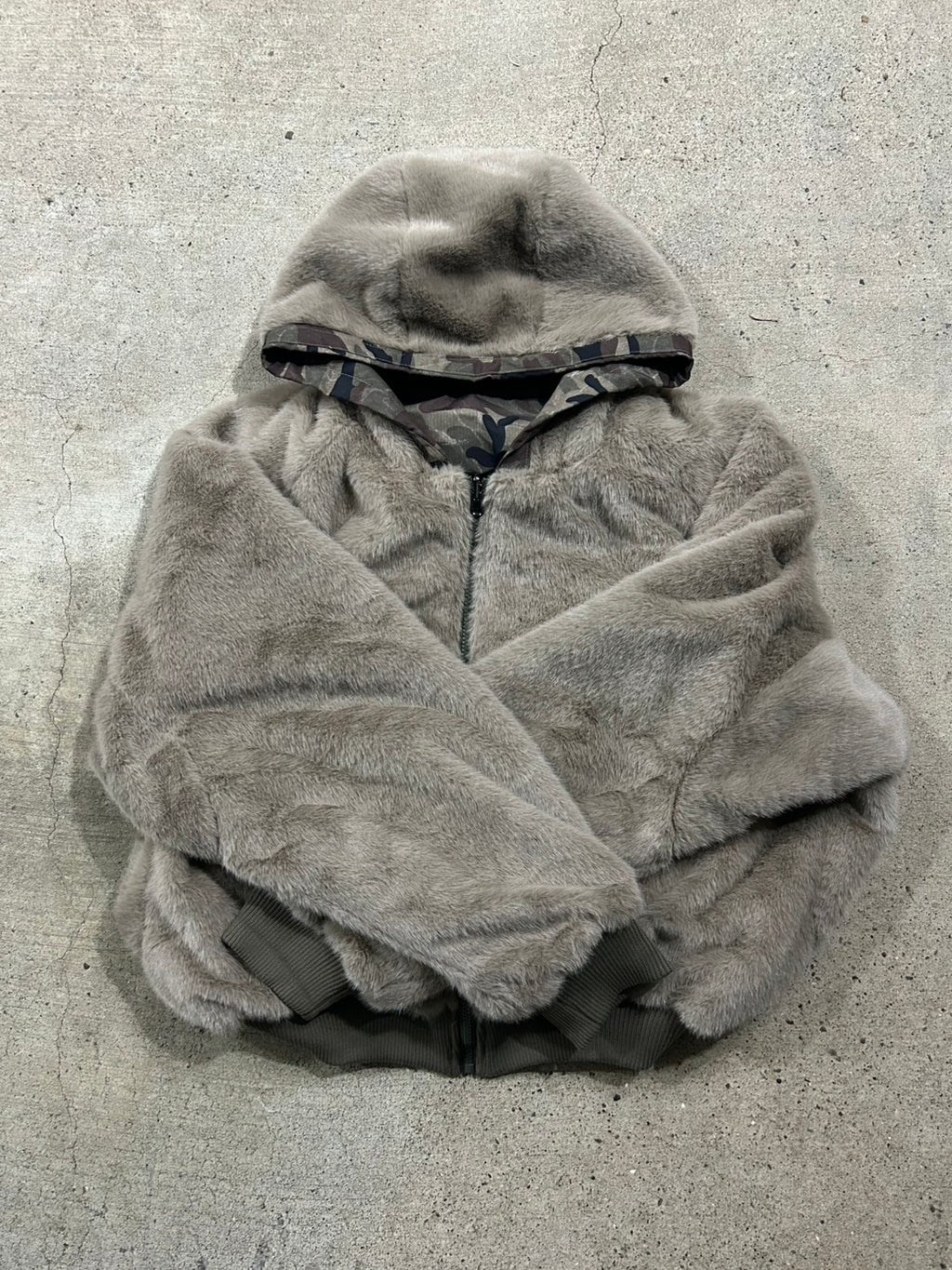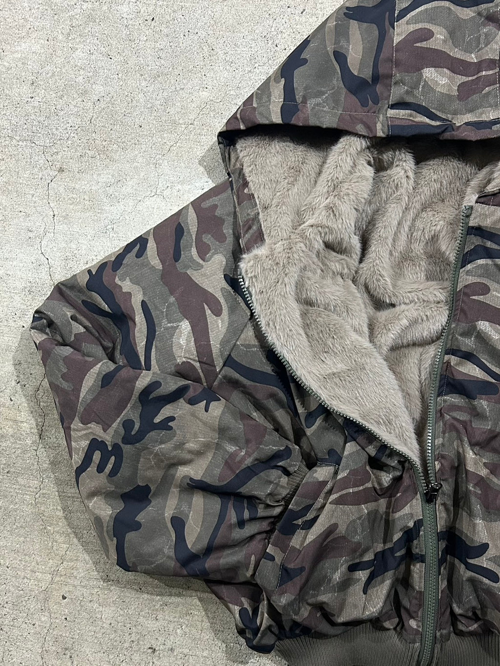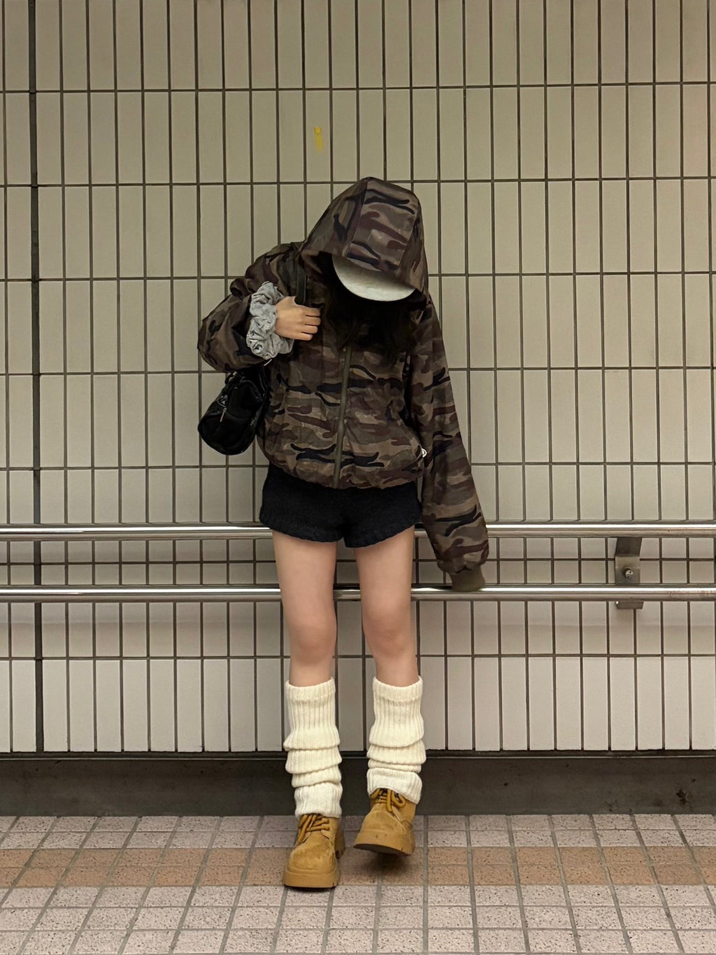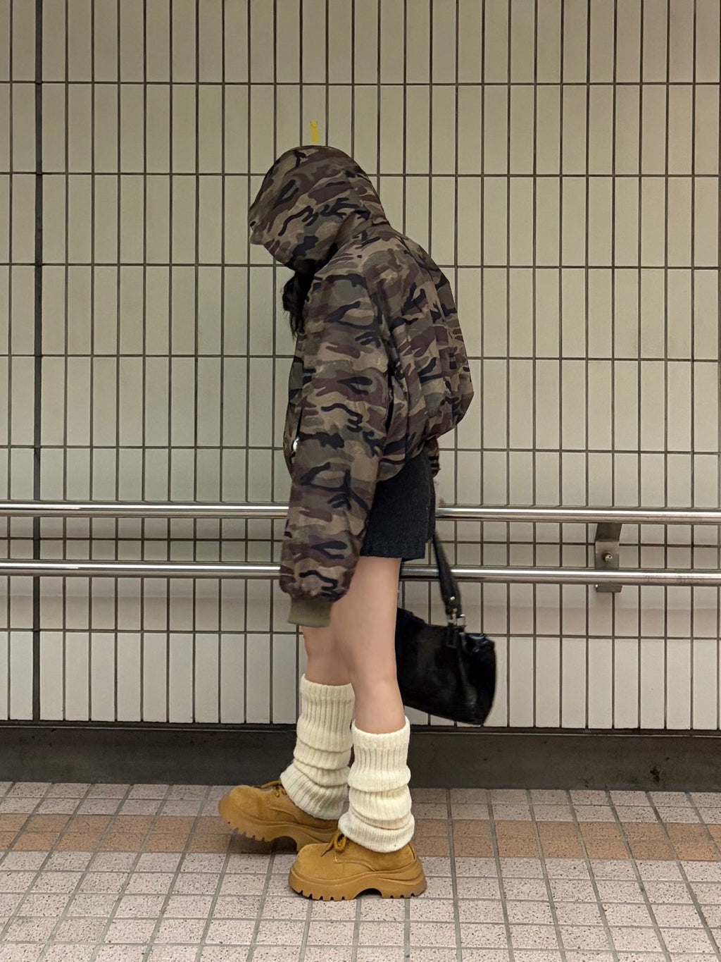 リバーシブル仕様で気分に合わせて雰囲気を変えられるのが嬉しい迷彩パーカー。迷彩でも色味が落ち着いているので、意外と合わせやすいです。ショート丈×ボリューム感でバランスが取りやすく、ミニボトムと合わせると程よく甘さも出て、冬のカジュアルコーデにちょうどいい一枚。