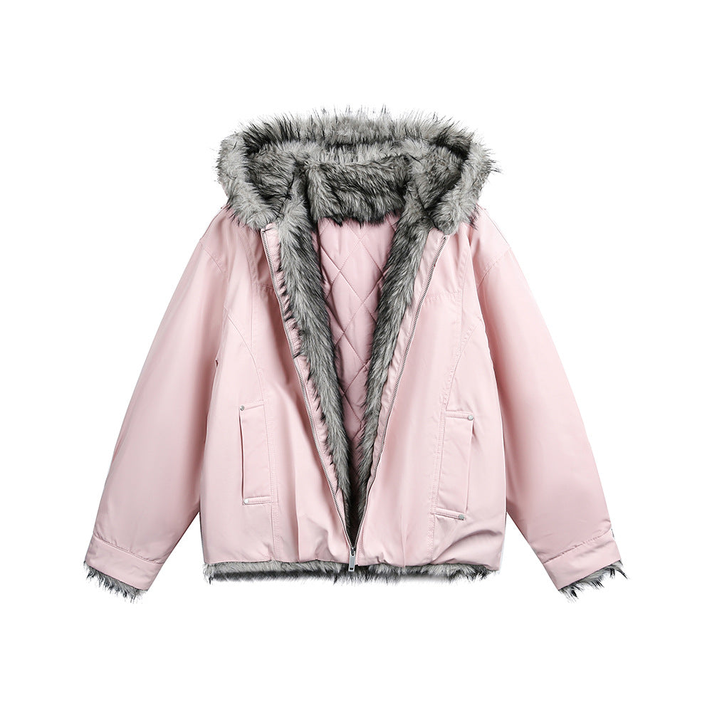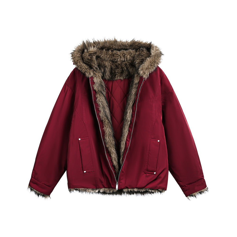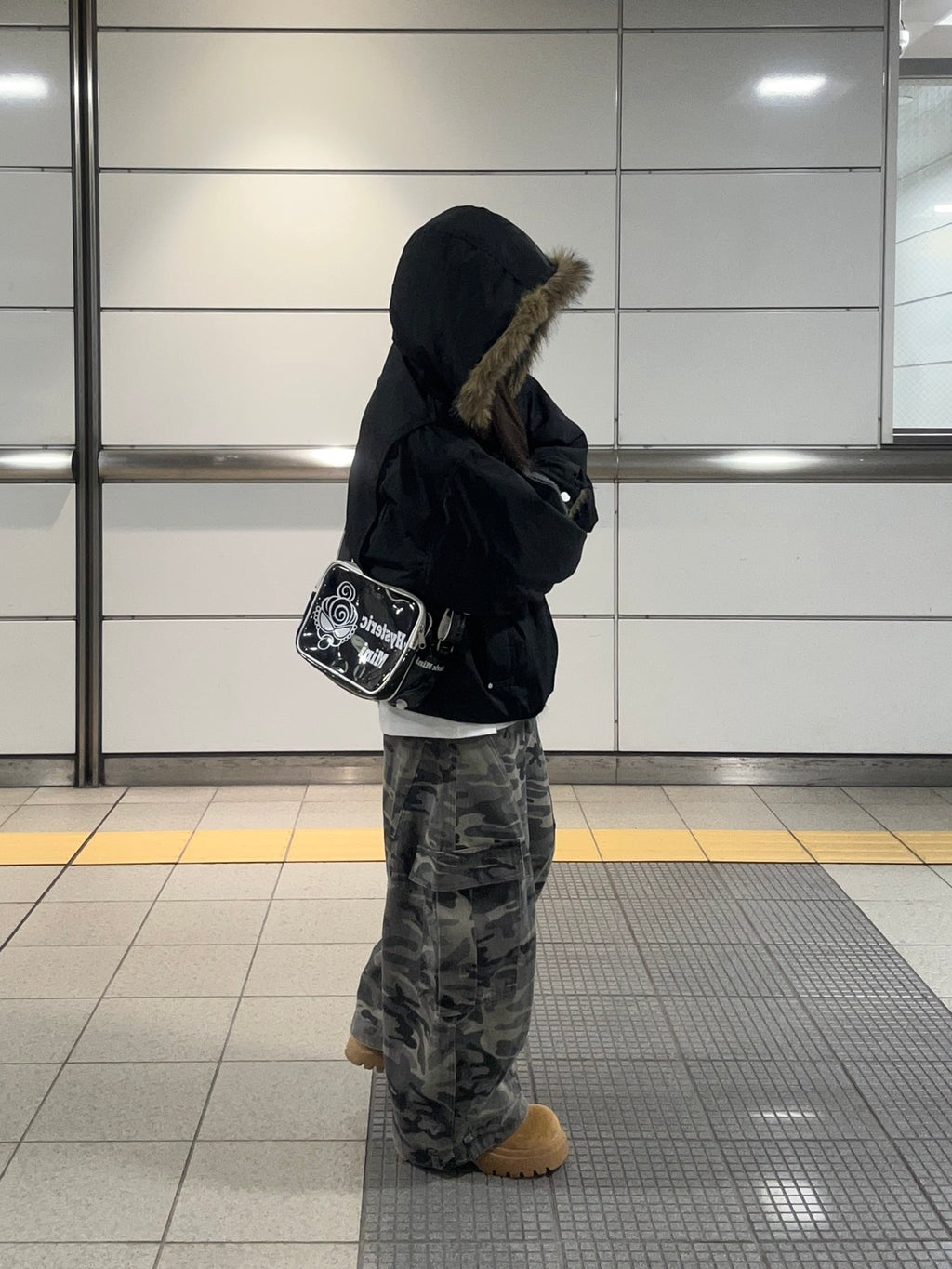 アメリカンヴィンテージ感のあるデザインとファーフードのボリュームが主役になるパデッドジャケット。しっかり暖かいのに重たく見えず、ワイドパンツとも相性抜群です。カモ柄と合わせて無骨さを出しつつ、インナーはシンプルにしてバランスを取るのが今の気分。