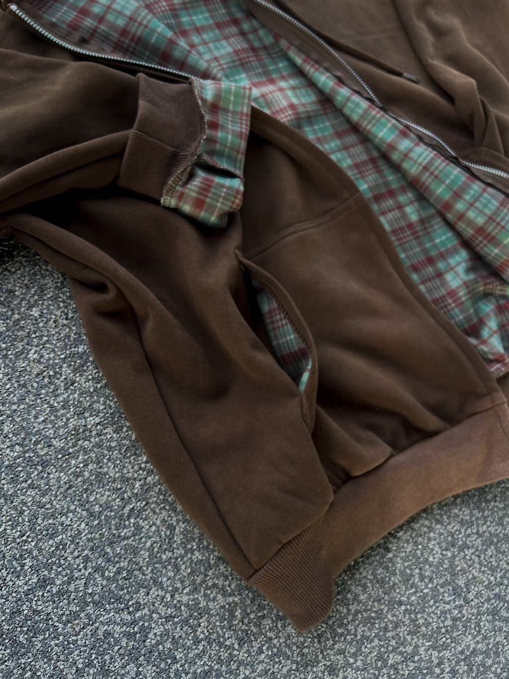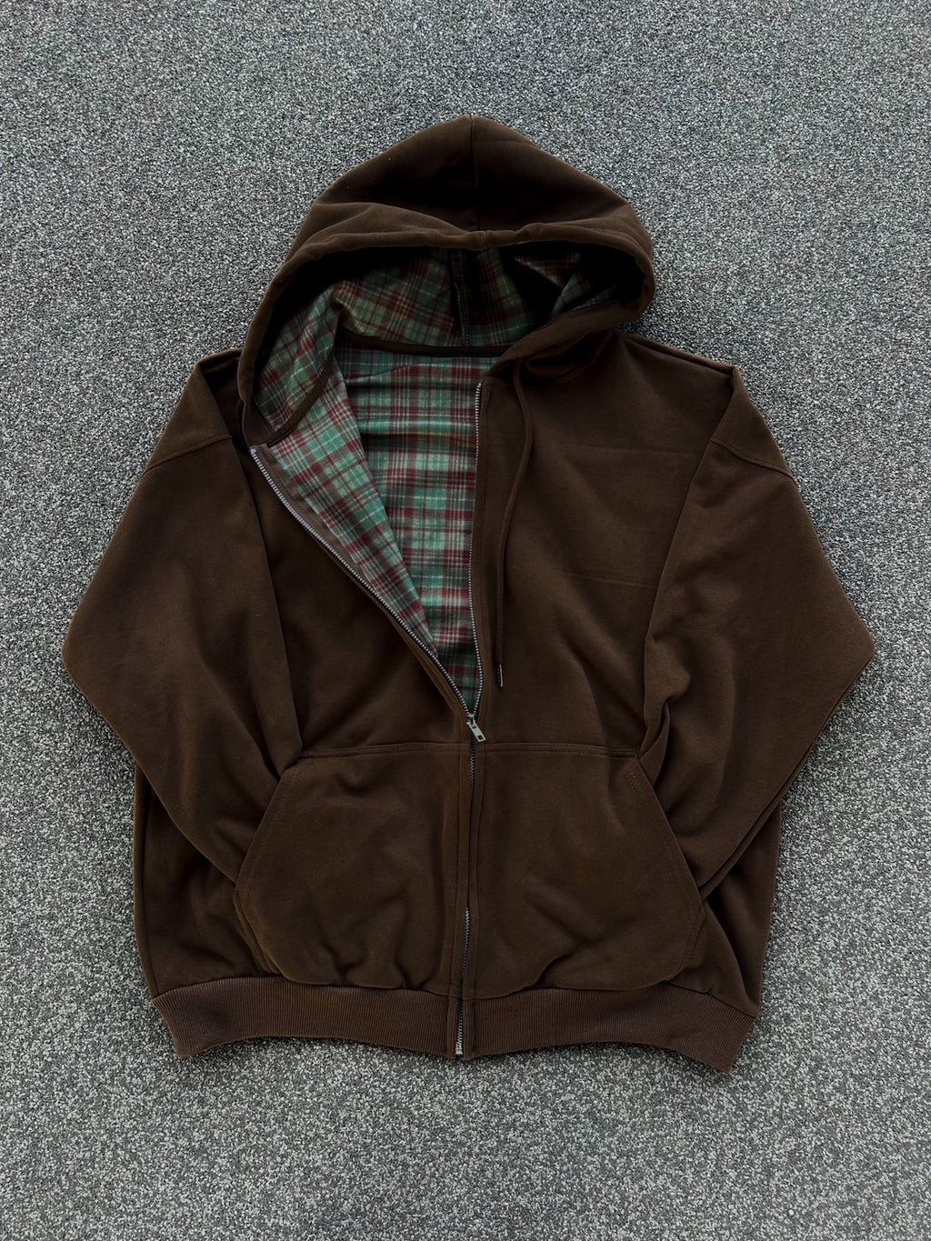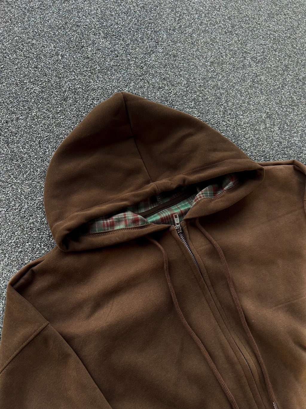 このパーカーの本当の可愛さは、フードの内側に隠された、クラシックなチェック柄。そして、こっそり、お揃いのシュシュまで付けちゃいました。この”秘密”の仕掛けが、あなたの毎日を、もっと楽しくする。