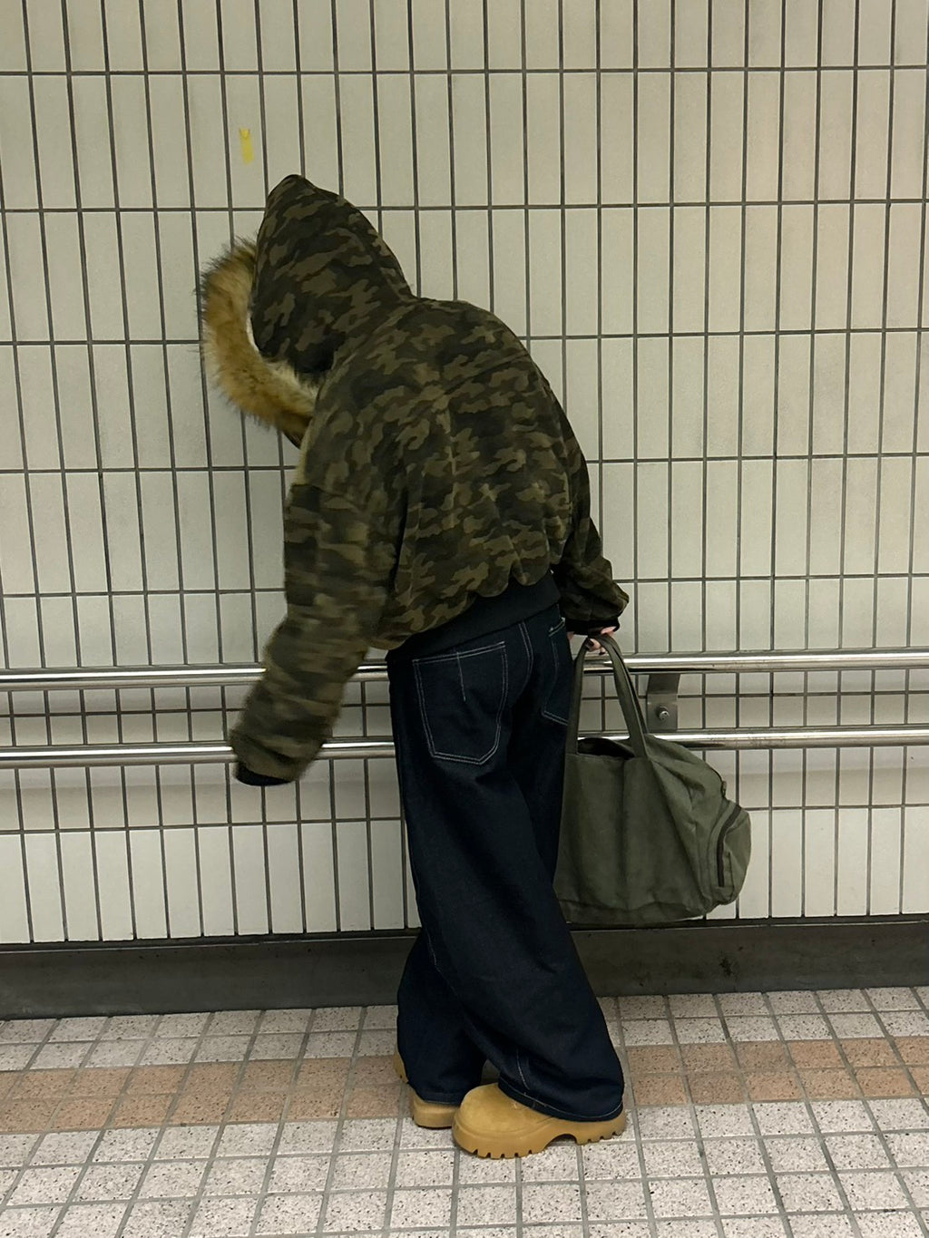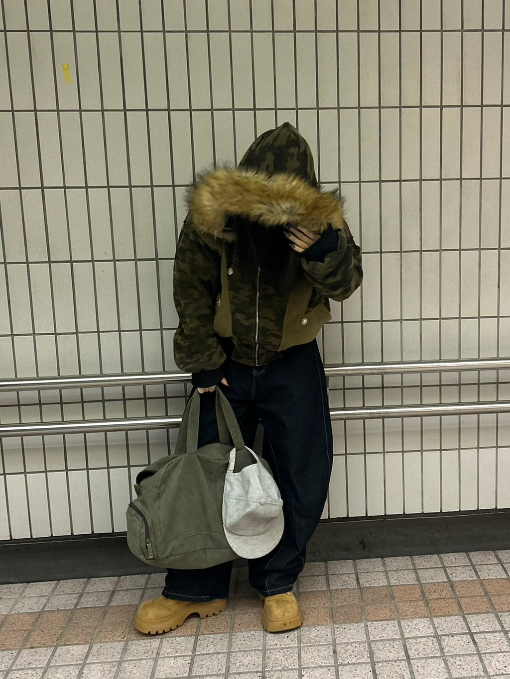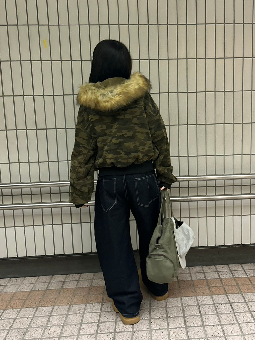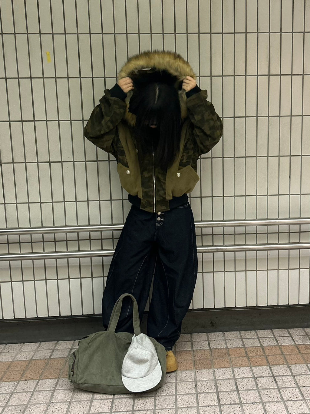 これは、”纏うコラージュアート”。カモフラ、ボア、そして艶やかなファー。異なる素材と質感を、大胆に、そして緻密に配置した。一枚で、幾重にも重なる、豊かな物語を、あなたのスタイルに。