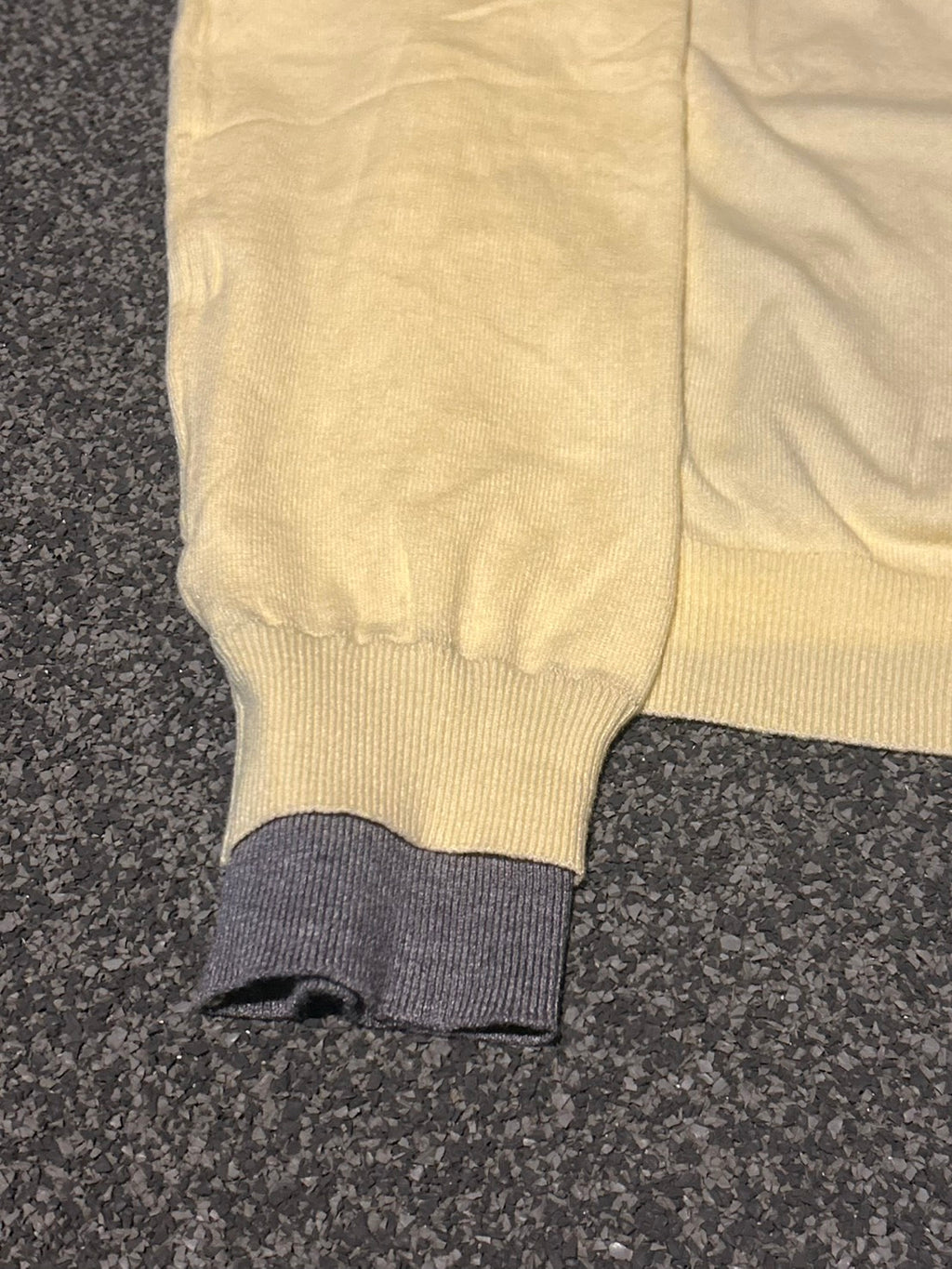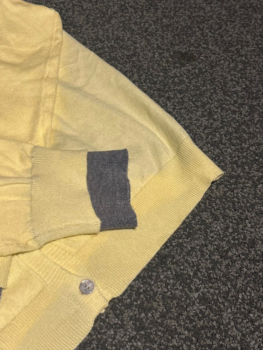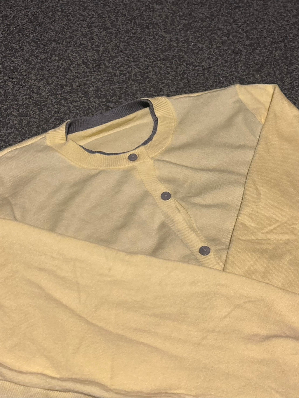 淡いイエローにグレーを差した配色が、やわらかな印象の中にトレンド感をプラス。薄手のニット素材で着心地も軽く、初秋から春先までロングシーズン活躍します。シャツやスカートと合わせてガーリーにも、デニムでカジュアルにも。1枚でこなれ感を演出できる万能アイテムです。