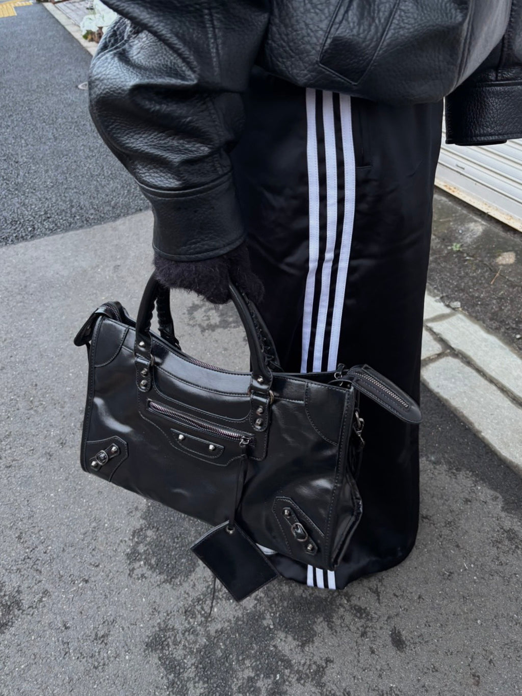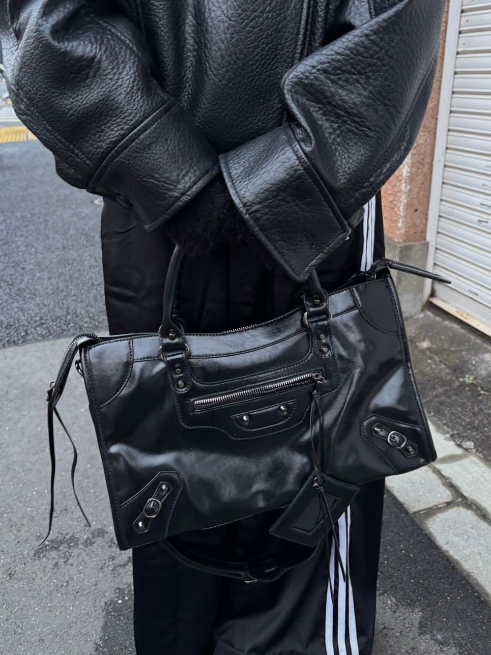 スタイリングを一段引き締めてくれる、モトデザインの大容量バッグです。