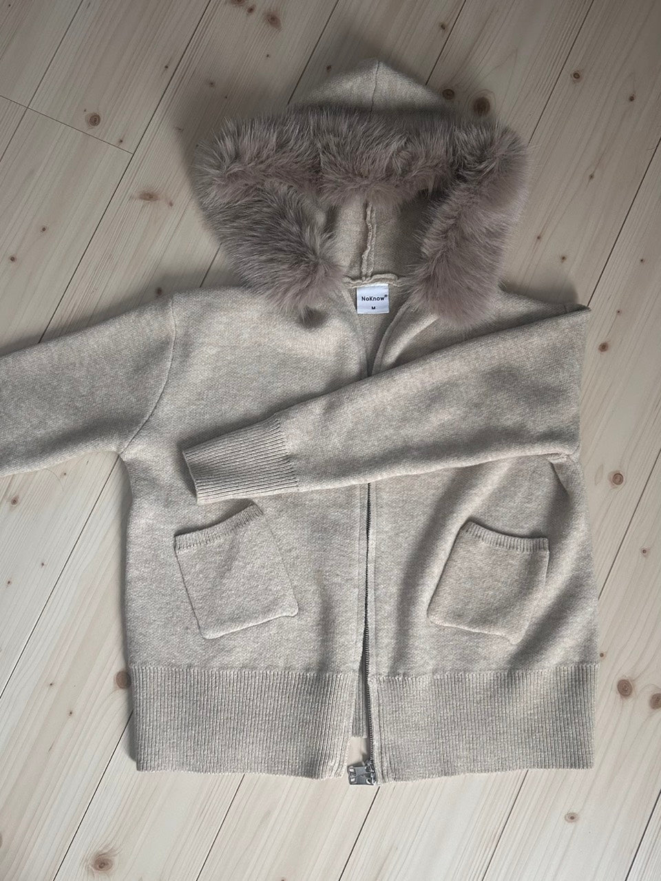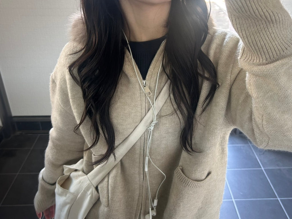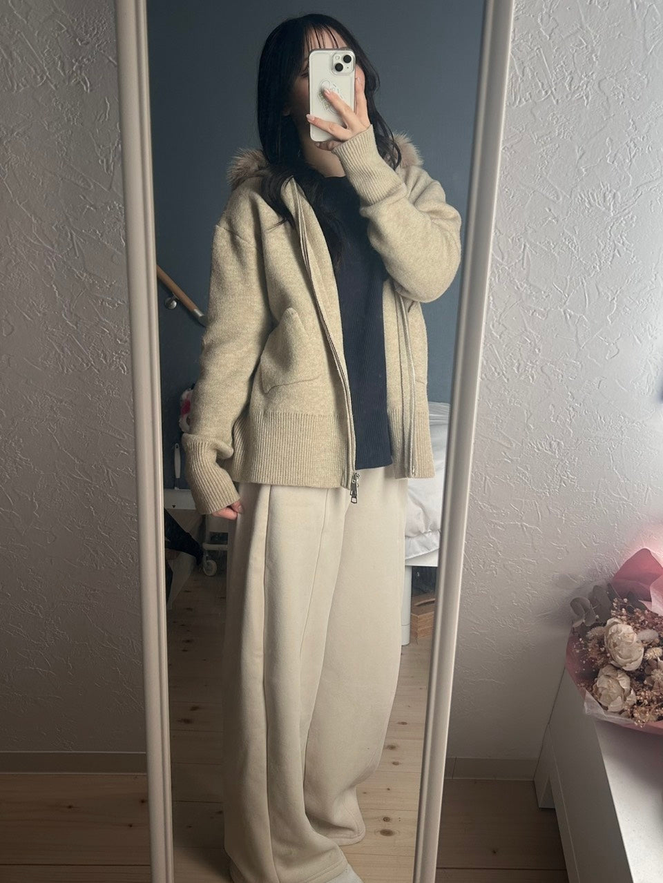 ふわっとしたファーのおかげで、シンプルなワントーンでも一気に冬のムードが高まるニットパーカー。柔らかいベージュの色味が肌馴染みもよくて、今日はゆるっとワイドパンツを合わせて抜け感のあるリラックスコーデに。暖かさも可愛さも欲張れる、冬の定番にしたいお気に入りです。
