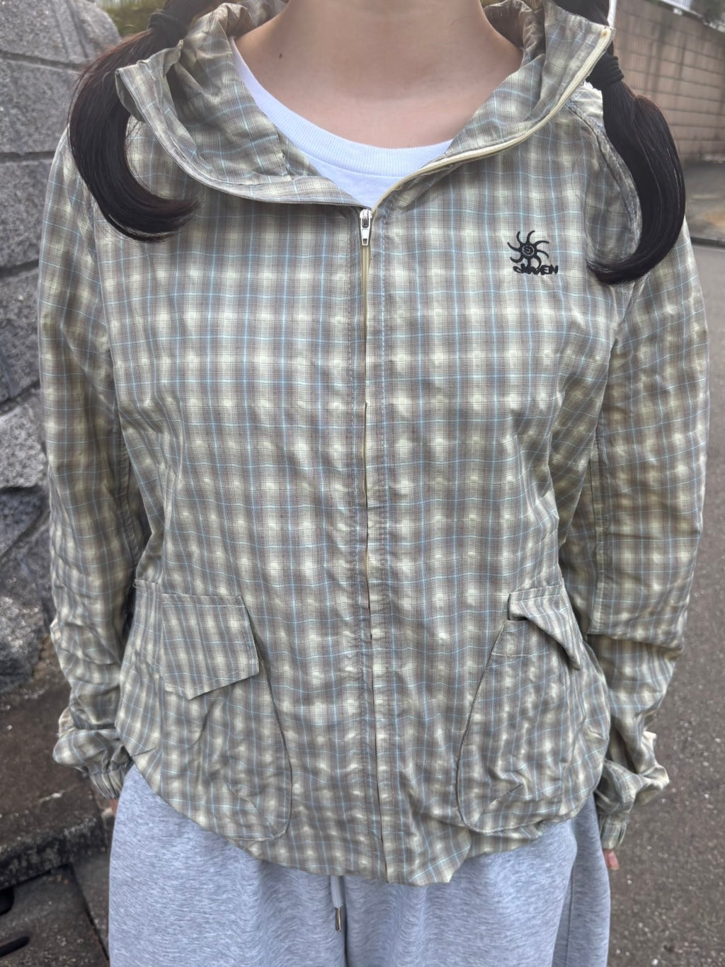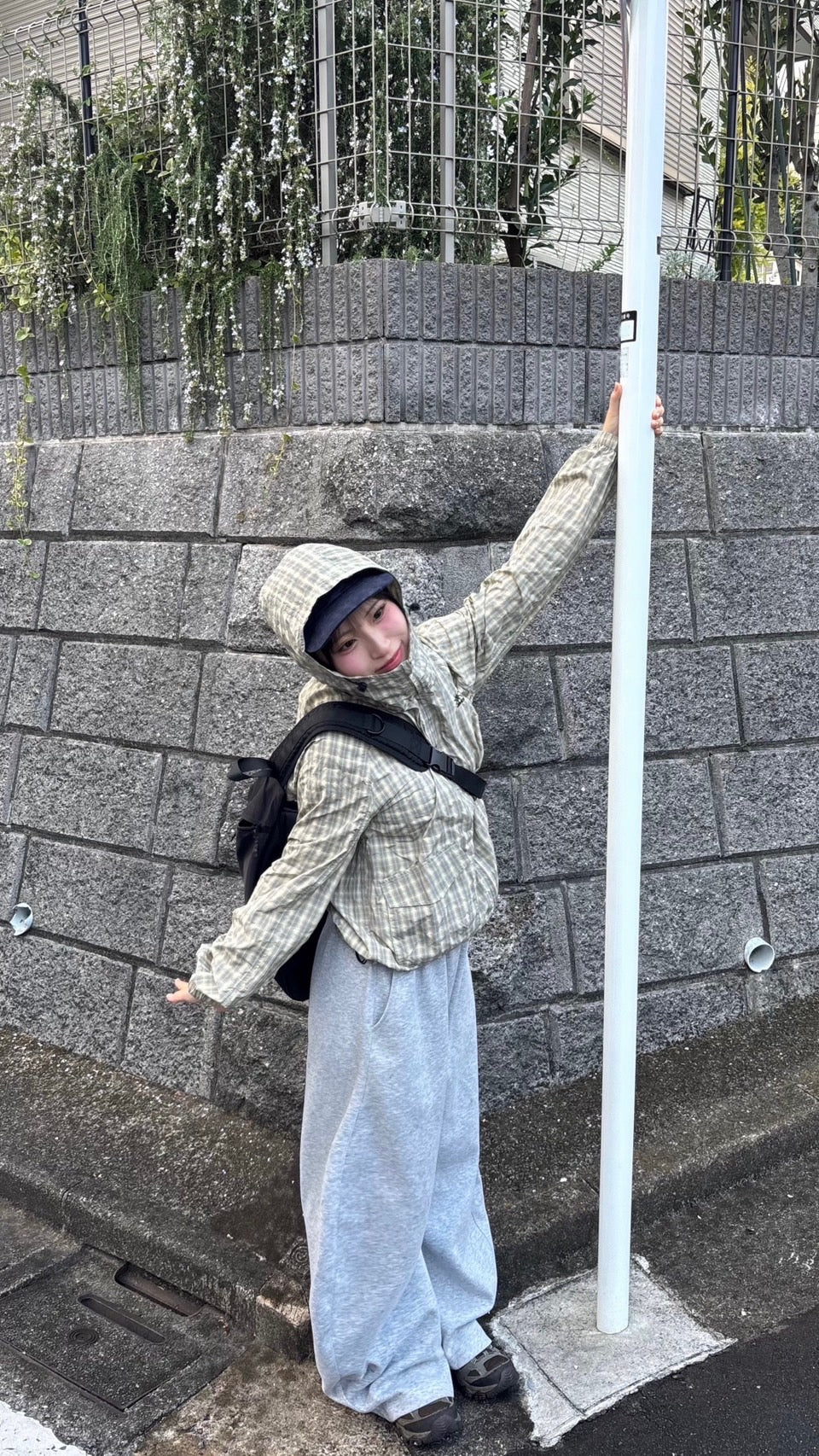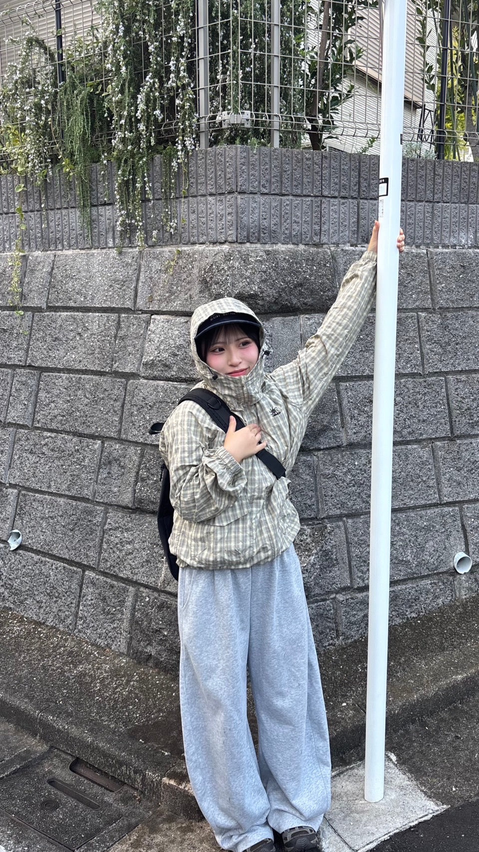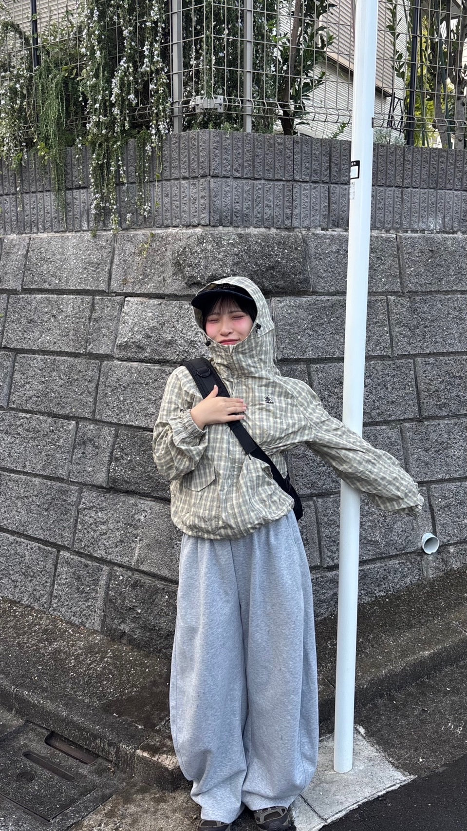 「今日は楽ちんスタイル♪ さらっと羽織れるチェック柄アノラックは、軽くて動きやすいのに可愛さも◎。カジュアルに街歩きにもぴったり!」
