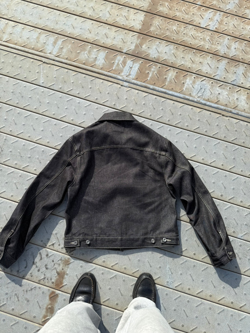このコーデは「無骨 × 抜け感」のバランスが絶妙。リジッドデニムの素材感の重みを活かしながら、スウェットやキャップで“力の抜けたストリート感”を作っています。