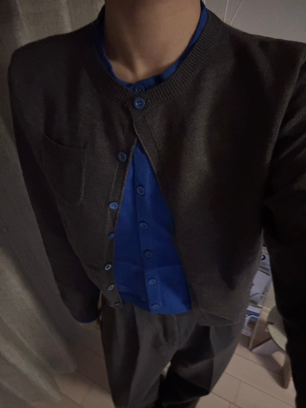 柔らかなニット素材で仕立てた、レイヤード風デザインのカーディガン。