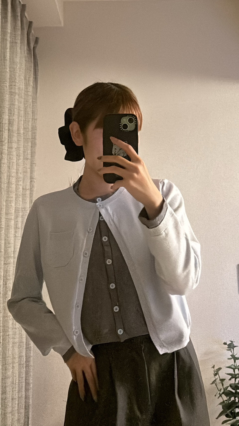 インナーを重ねたようなディテールが奥行きを生み、シンプルながらも印象的な一枚。短めの丈感でバランスが取りやすく、ハイウエストボトムとも好相性。シャツやスカートに合わせてクラシカルにも、デニムでカジュアルにも着回せる、美式レトロムード漂う万能アイテムです。