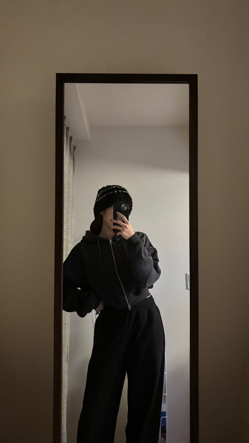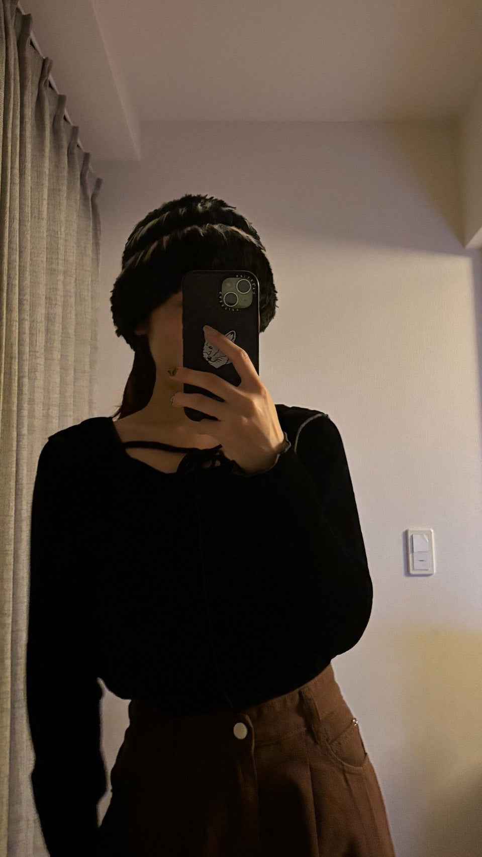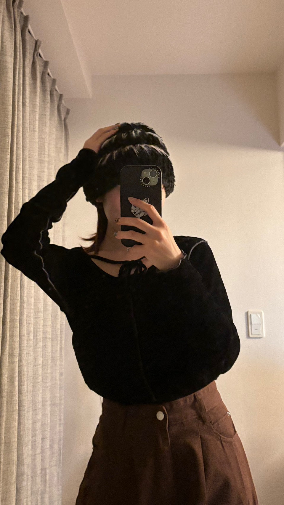 こちらはエコファー・シャギーニット素材のバケットハットを使った、秋冬らしいコーディネートです🖤🧸