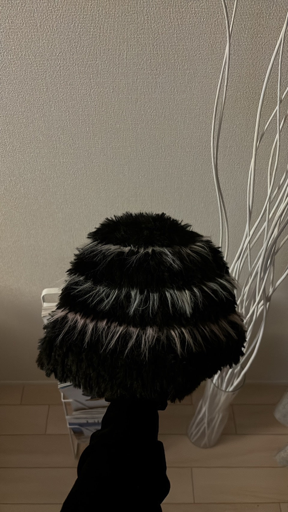 ふわふわのシャギー感と、黒×グレーのミックスカラーが特徴のハットは、