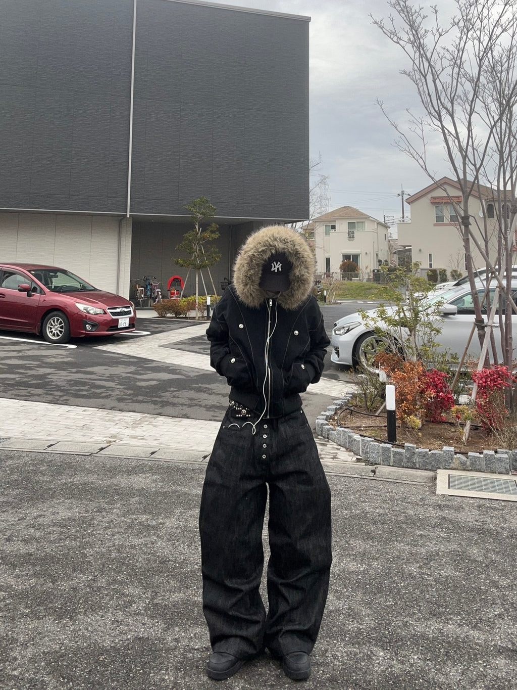 コンパクトな着丈ながら存在感があり、ワイドパンツやデニムと合わせるだけでバランスの取れたスタイリングが完成します。首元までしっかり包み込むファーで防寒性も◎。カジュアルにもストリートにも相性が良く、冬の主役アウターとして活躍する一着です。