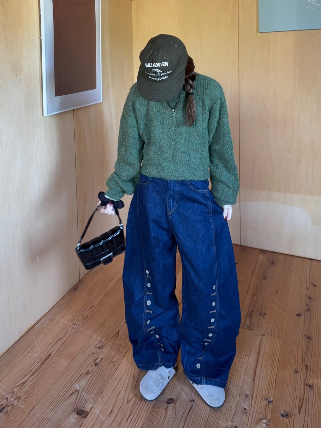 重めのデニムとも好相性で、抜け感のあるストリートミックスに。裾をタックインしてメリハリを意識するのが◎