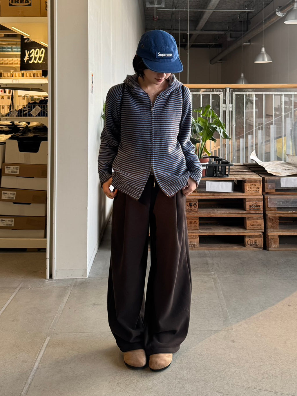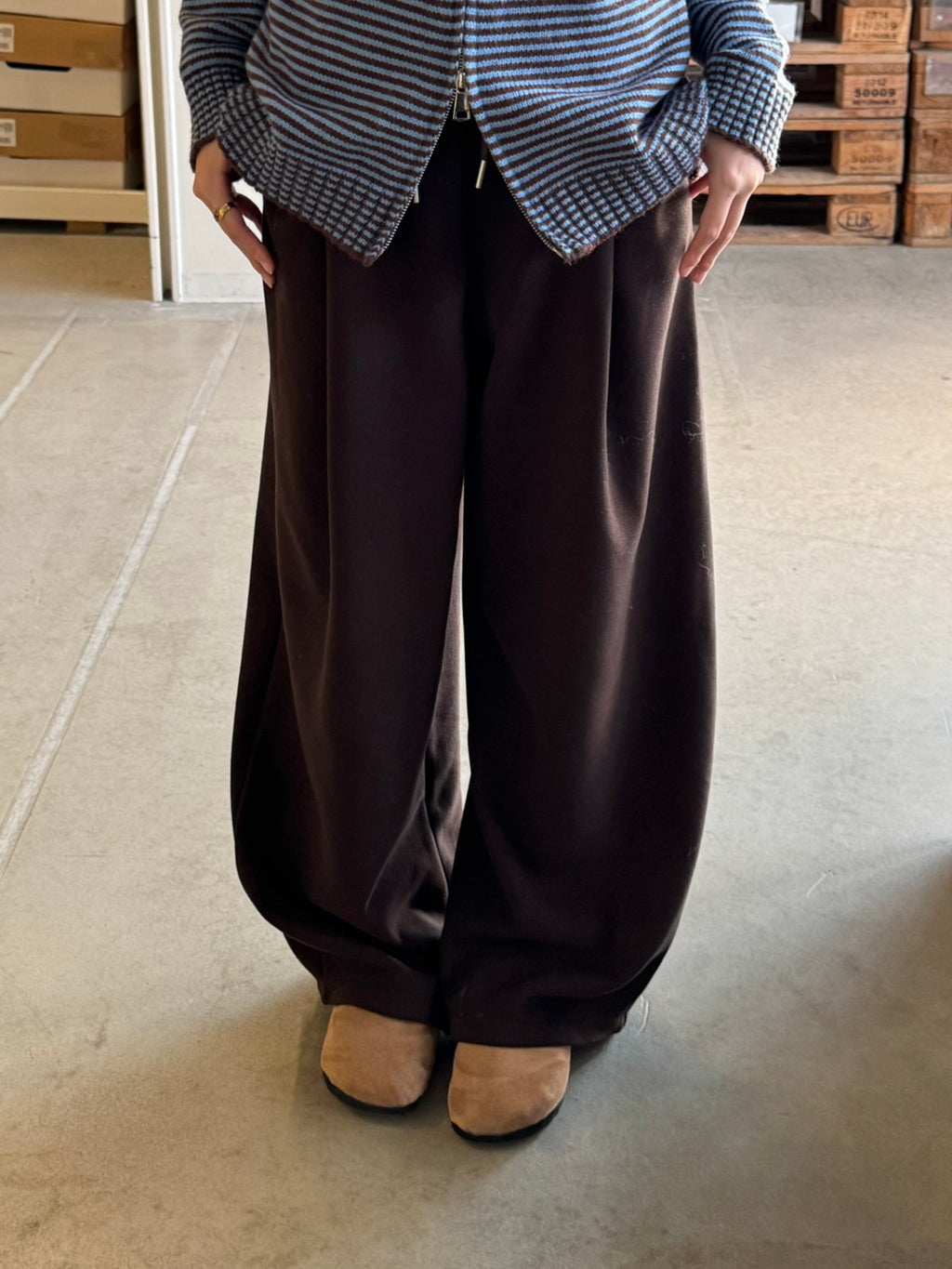 裏起毛仕様で暖かさと快適さを兼ね備えたドローストリングワイドイージーパンツ。
