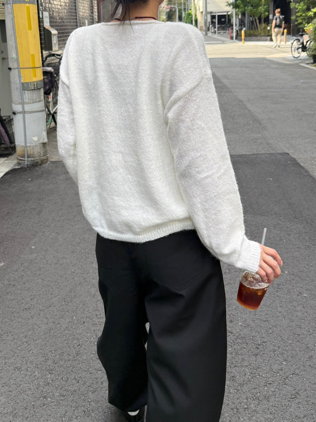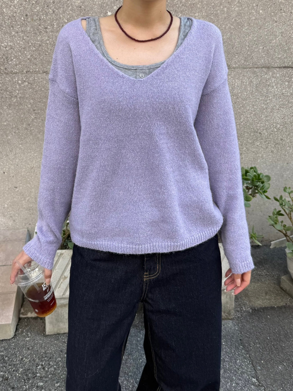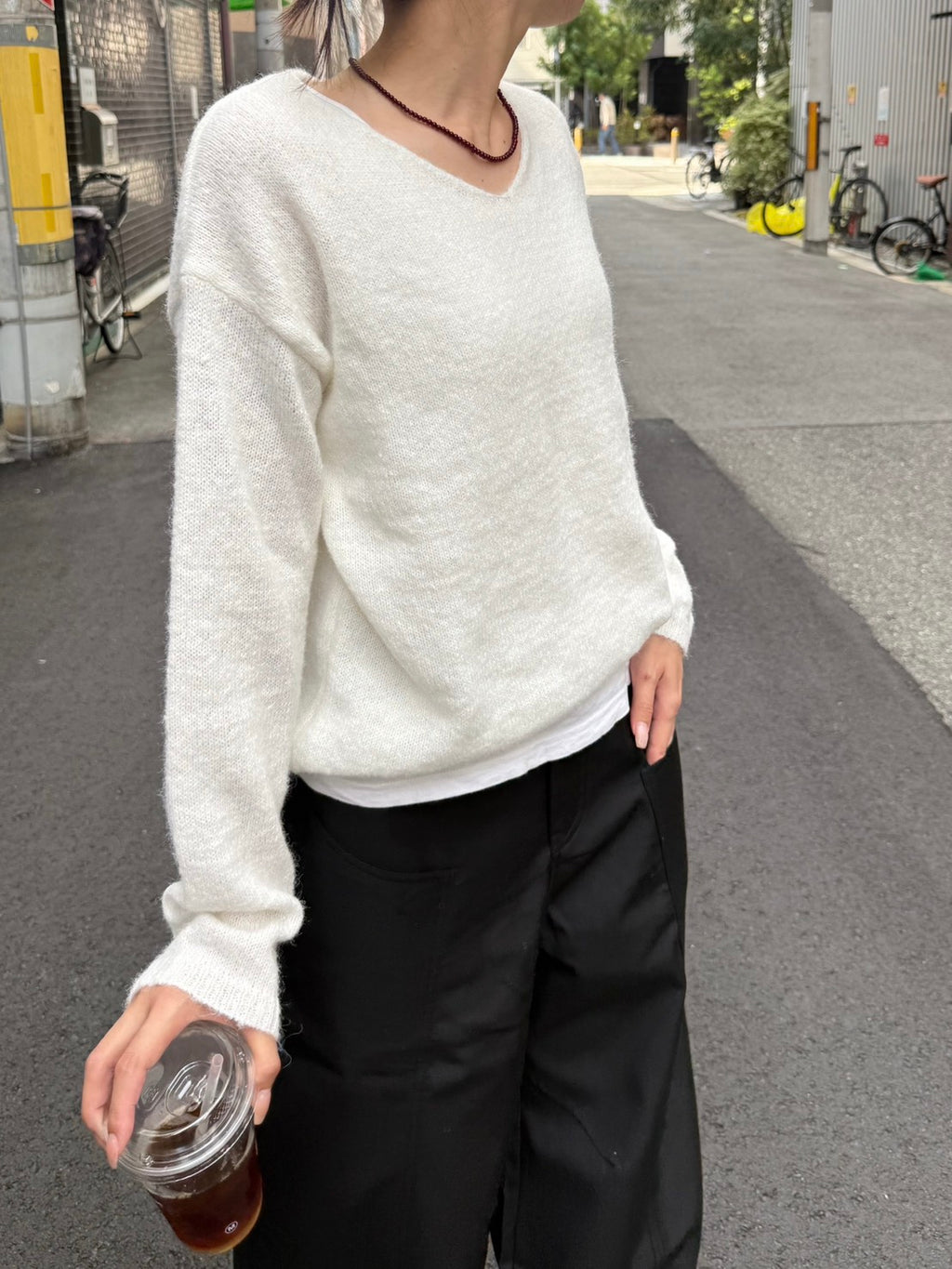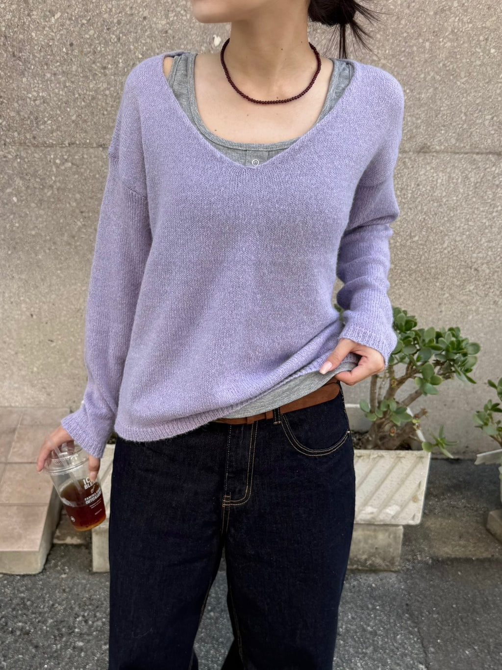 今日はVネックを活かしてレイヤードスタイルに。白ニットには白Tを、ラベンダーにはグレーのヘンリーネックをイン。この首元のレイヤード感がポイント。ボトムスはあえてワイドデニムやスラックスで、ゆるっとリラックス感を。シンプルだけど、素材感と色味で差をつけるのがマイルール。