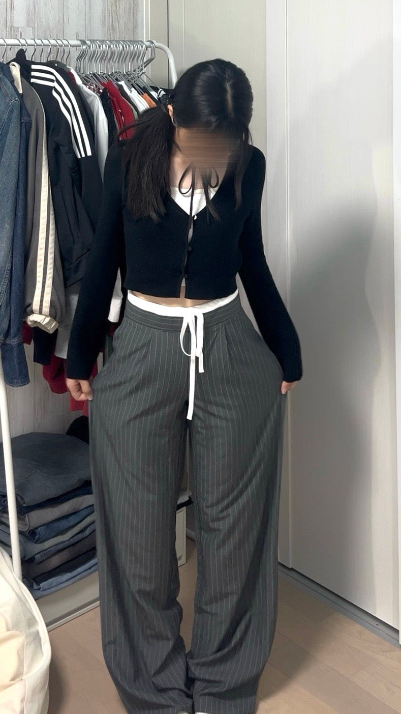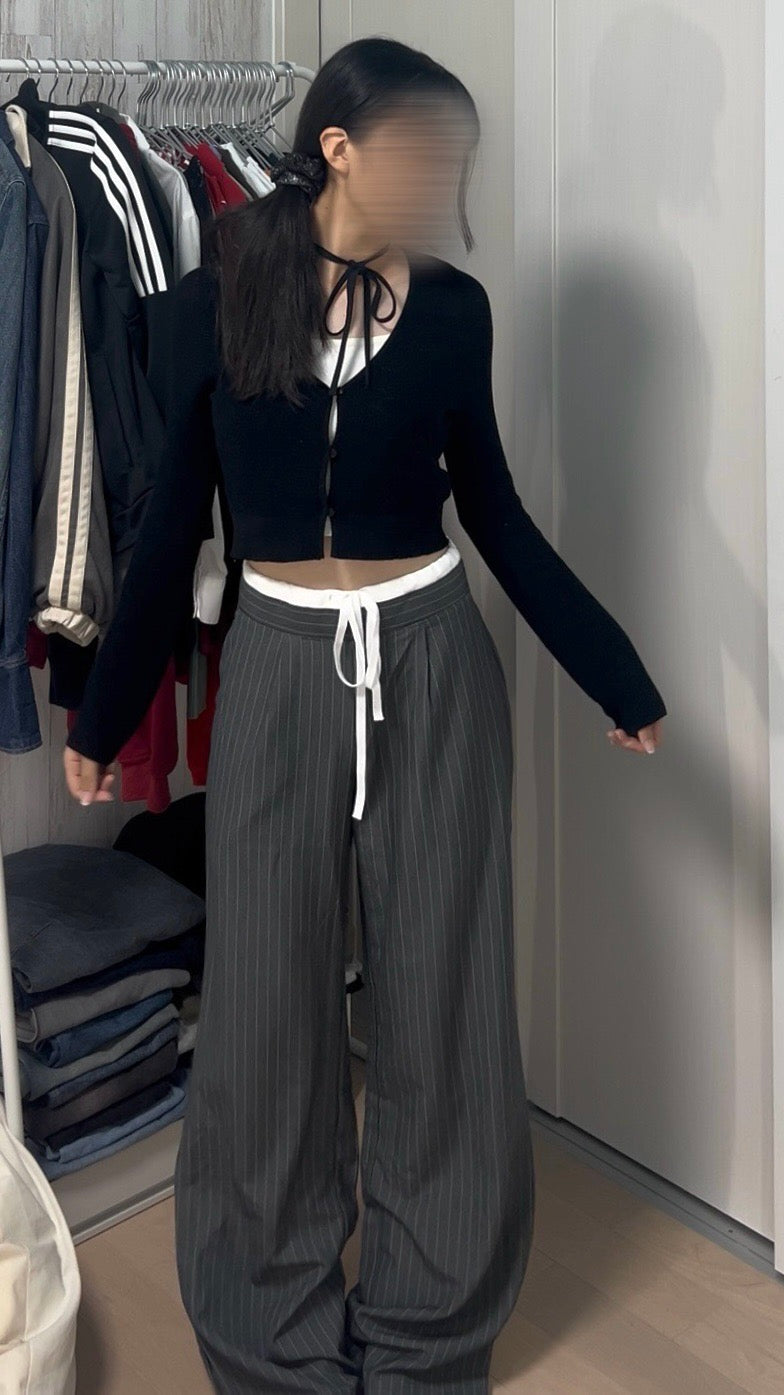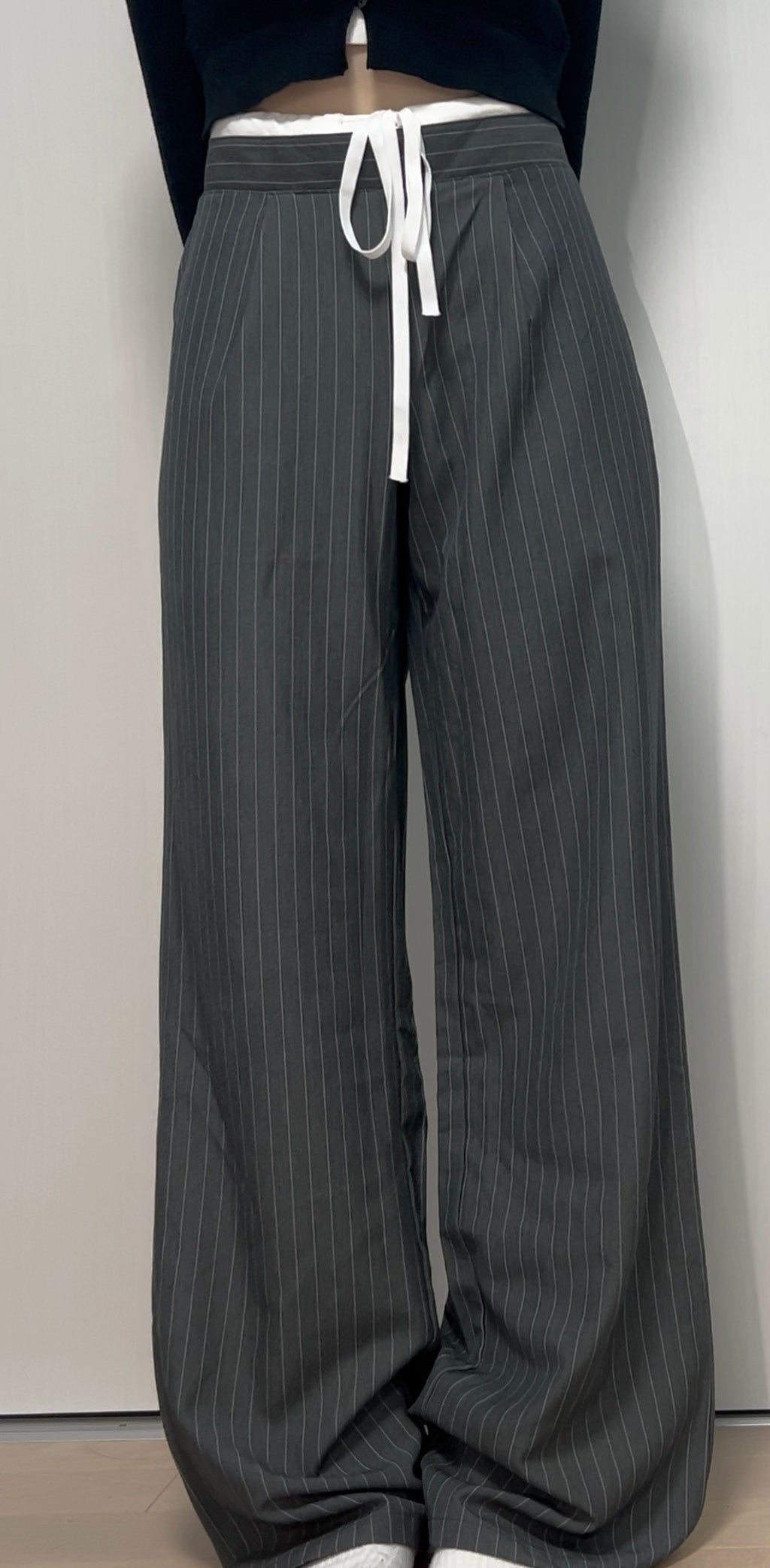 このパンツの秘密は、ウエストの”嘘つき”なデザイン。まるで、スラックスの下に、白いショーツを重ねたみたいでしょ?この計算された”遊び心”こそ、ありふれた日常を、もっと楽しくするスパイスです。