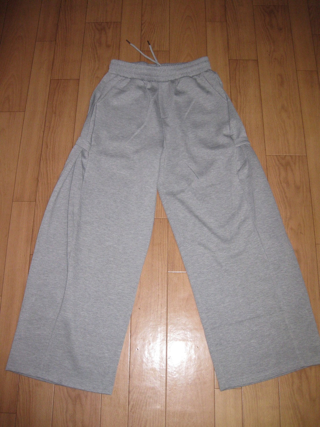 これは、”デザイン”された、スウェットパンツ。脚を立体的に見せる、計算されたシームラインと、ウエストで静かに光る、一つのスナップボタン。ありふれた日常着に、私たちは、静かな”知性”を込めた。