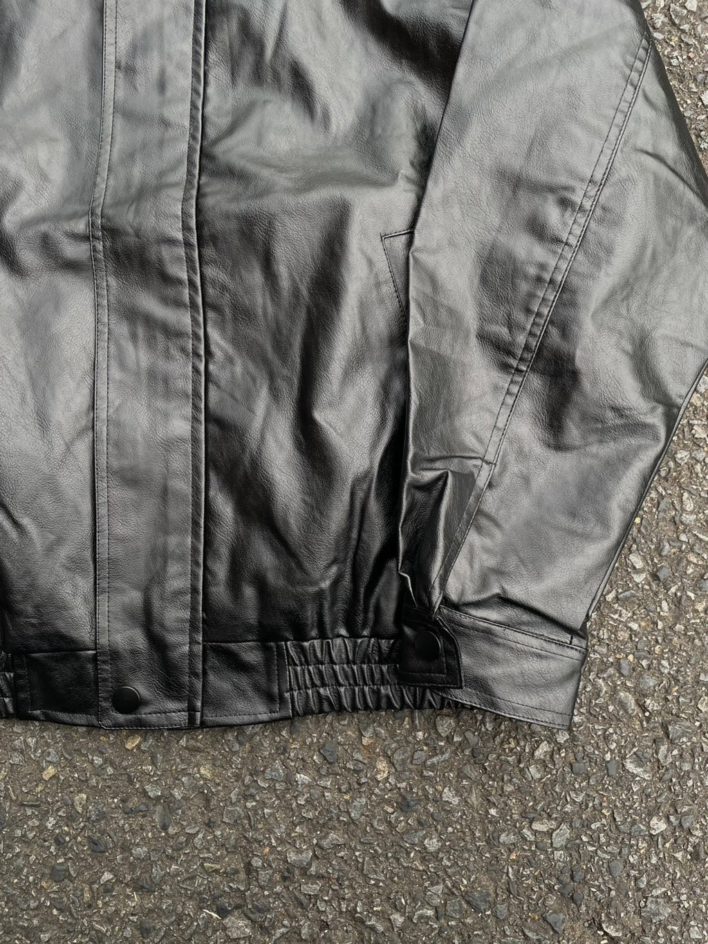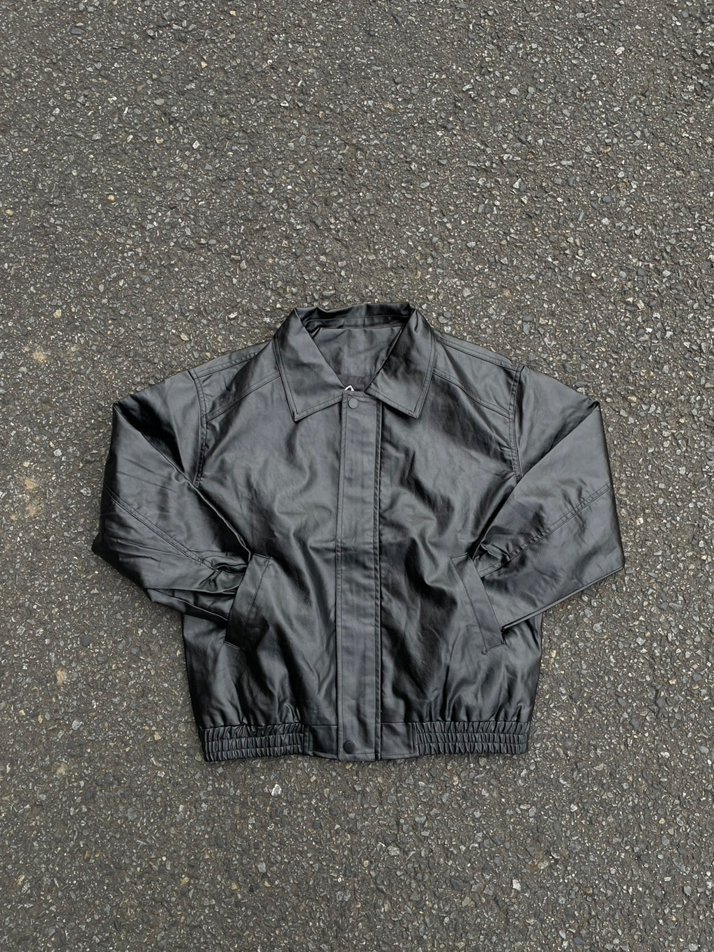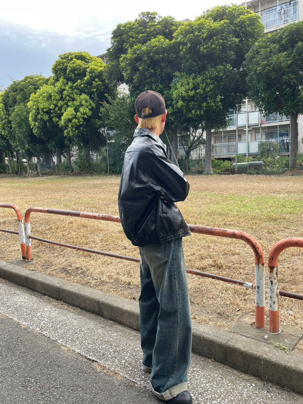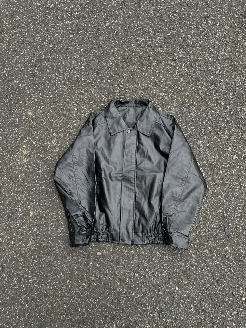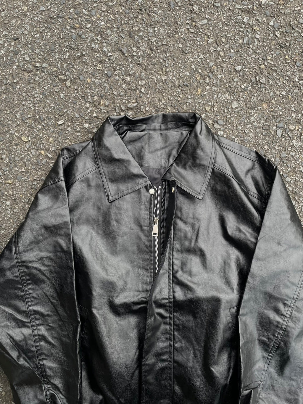 このPUレザージャケットは、カチッとしすぎないオーバーサイズ感が魅力。今日はシャツとネクタイを合わせて、あえてドレッシーな要素をMIX。でも、足元はワイドデニムで重めに。この「キレイめ×ストリート」のアンバランス感がコーデの鍵。キャップで抜け感を出すのも忘れずに。
